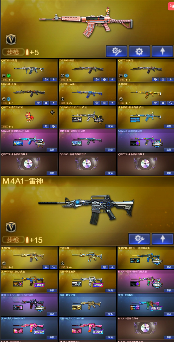 【热门音效卡】:M200-幻神音效卡(4)/Kar98K-星神音效卡(2)/AWM-裁决音效卡(2)/Scar Light-白虎音效卡/QBZ03-金色蔷薇音效卡(3)/HK417-朱雀音效卡/QBZ03-天罚音效卡(3)/M4A1-雷神音效卡(3)/M4A1-黑骑士音效卡/M4A1-黑龙音效卡/星神-古蛇迷踪音效卡/八面凌龙音效卡