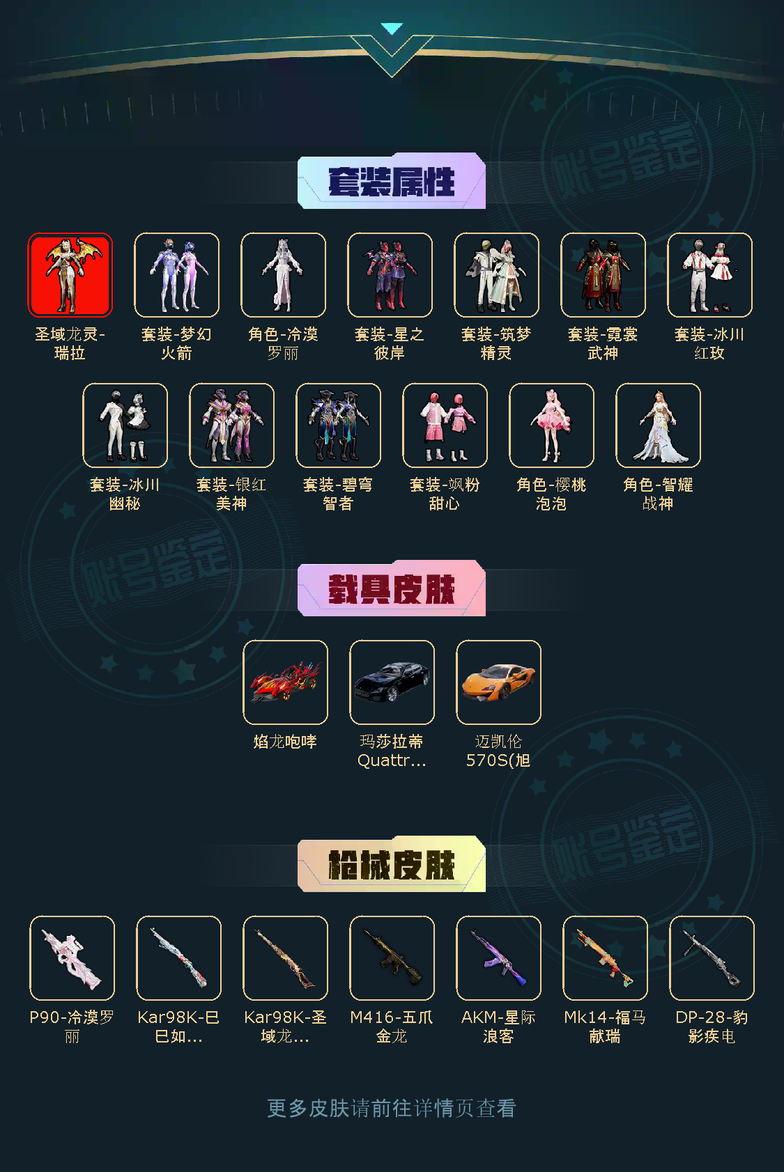 【稀有资产】圣域龙灵-瑞拉[4级]/M416-五爪金龙/套装-雪山精英/套装-龟仙人/套装-绒宝小鹅/套装-墨青刃影/套装-圣穹绘梦/玩偶服-美羊羊/角色-六号稻草人/角色-灵公主/角色-时希公主/角色-乐音