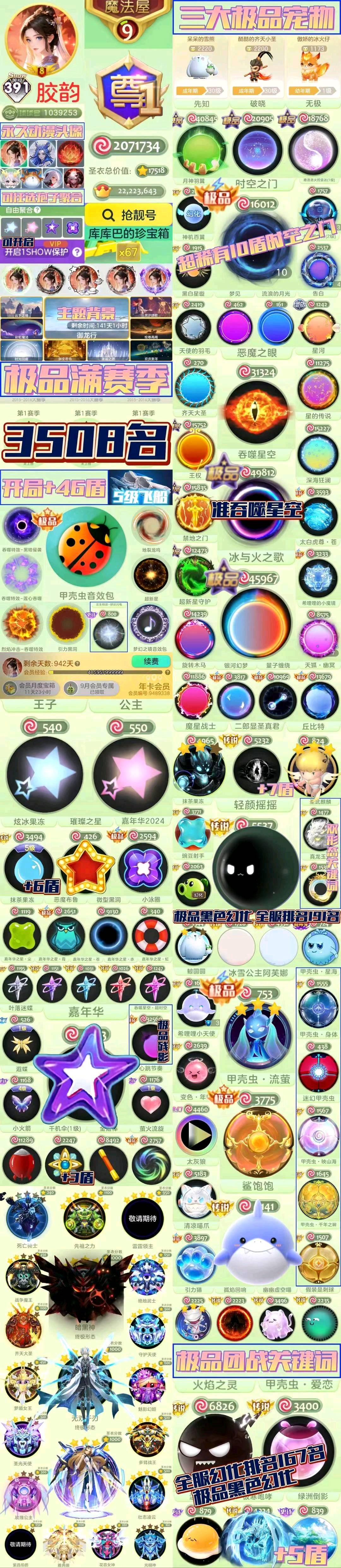 【全平台】 满赛季3508排名,嘉年华,有魔星战士,丘比特,阿芙娜各种稀有皮肤