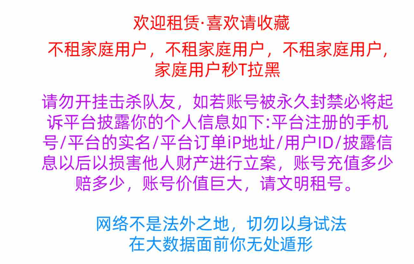 租赁押金:0元(不得使用外挂等第三方软件,违反将会扣除押金)