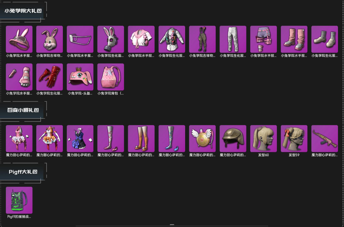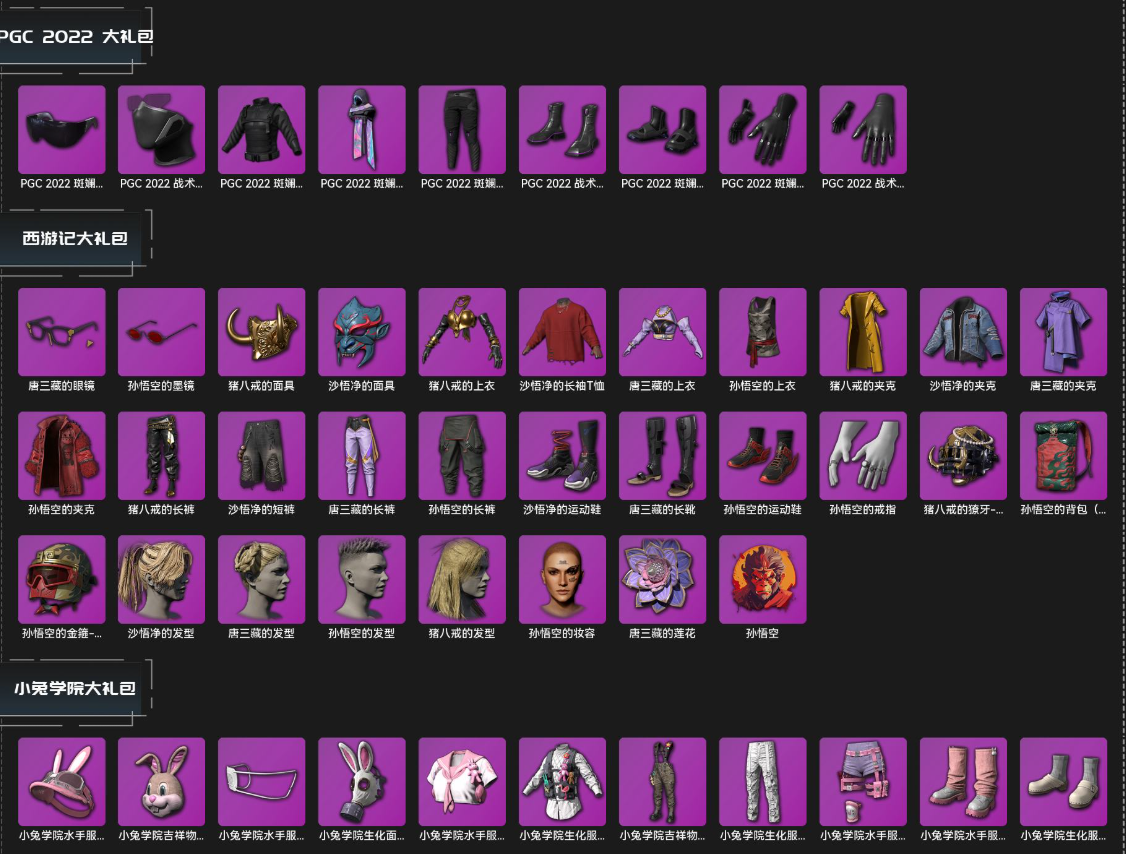 【优质套装】亡灵节礼包,小兔学院大礼包,PGC 2022 大礼包,西游记大礼包,蒸汽朋克大礼包,百变小樱礼包,星魂大礼包,Pigff大礼包,危险玩偶屋超级大礼包,叛逆兔大礼包