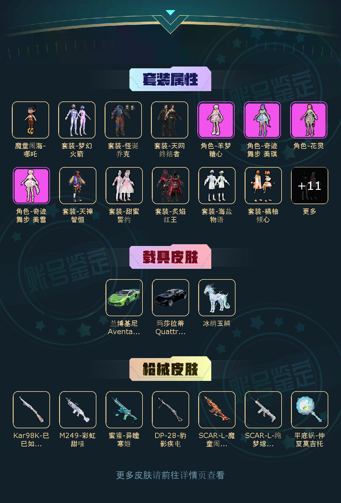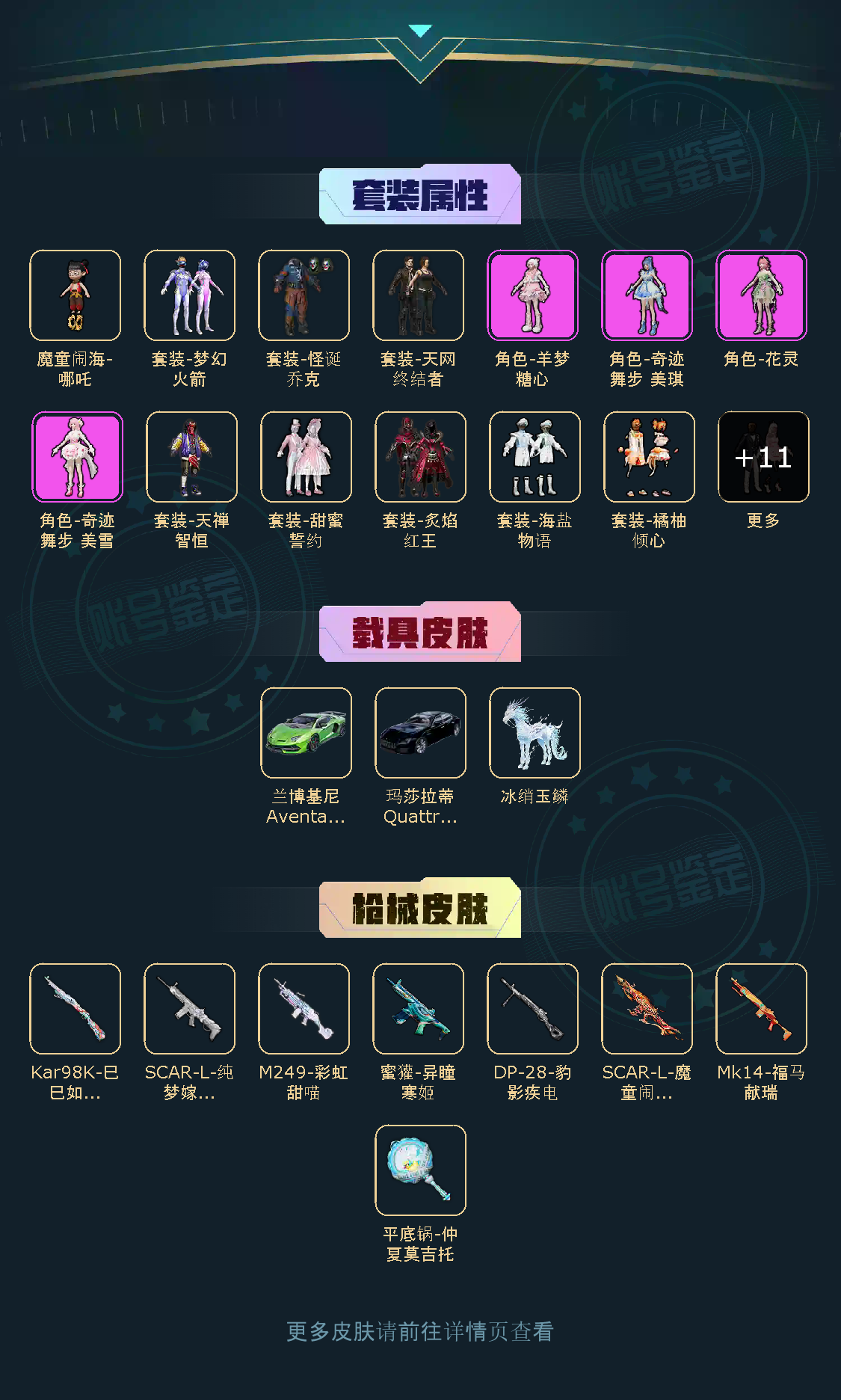 【稀有资产】角色-魔童闹海-哪吒[2级]/套装-怪诞乔克/套装-第五大道/角色-羊梦糖心/SCAR-L-魔童闹海 哪吒/小丑红鼻头/套装-天网终结者/套装-胖达圆圆/套装-暗夜魅影/套装-粉红小猪/套装-浪漫天命/套装-潮萌小黄鸭/套装-暗影哥特/套装-龟仙人/套装-迅捷狂鲨/套装-狂沙舞者/玩偶服-懒羊羊/玩偶服-美羊羊/玩偶服-喜羊羊