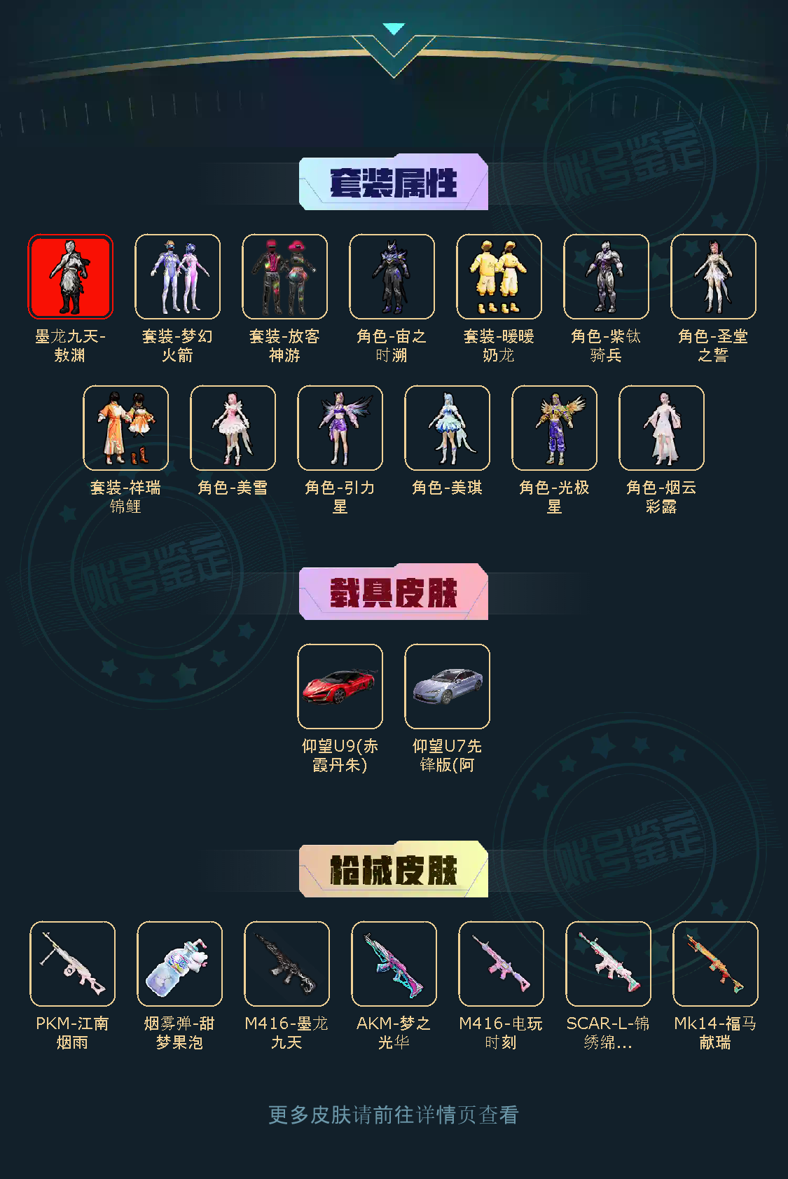 【稀有资产】墨龙九天-敖渊[2级]/M416-墨龙九天/AKM-梦之光华/M416-电玩时刻/烟雾弹-甜梦果泡/套装-浪漫天命/套装-暗影哥特/套装-龟仙人/套装-狂沙舞者/角色-银尘/角色-情公主/角色-白光莹