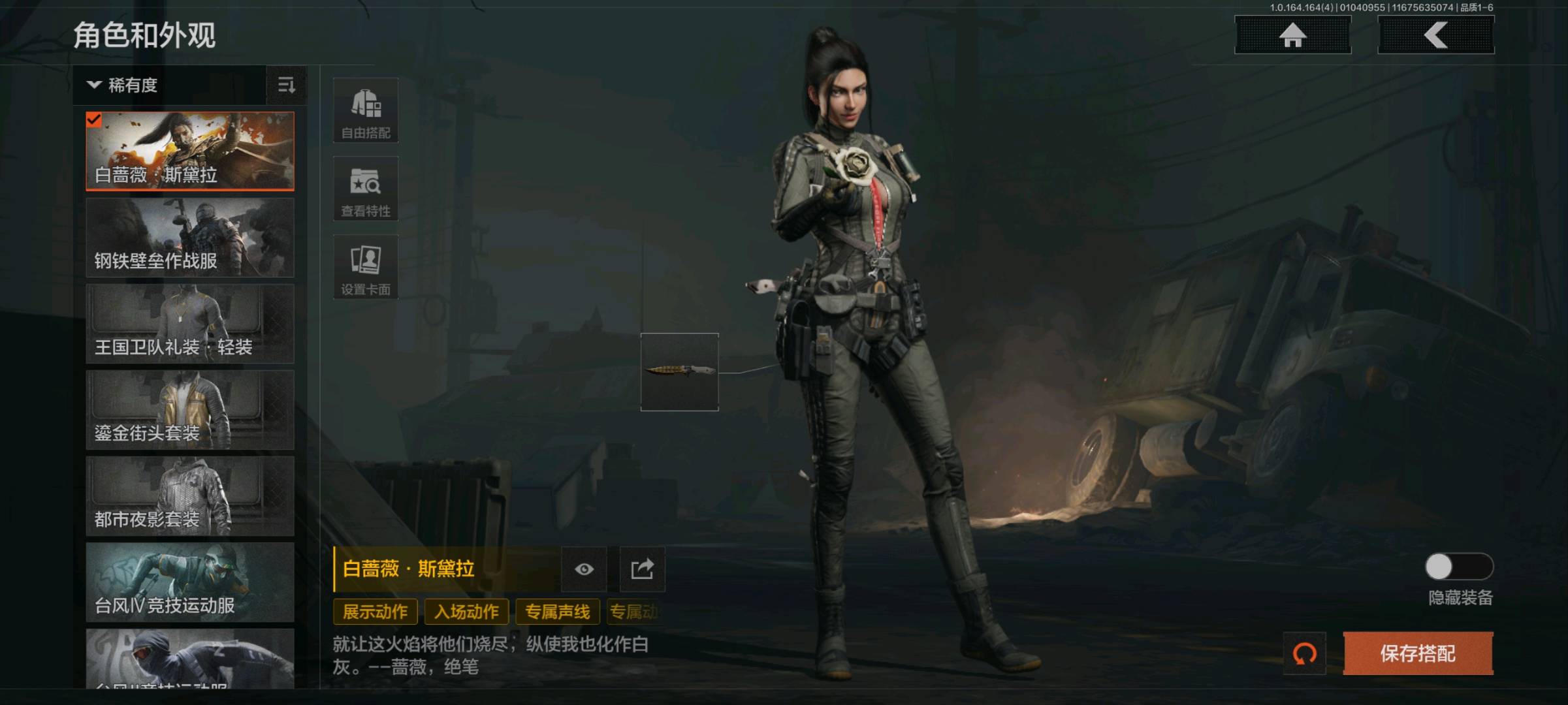 白蔷薇斯黛拉,钢铁壁垒作战服,鎏金街头套装,都市夜影套装,台风IV竞技运动服; 【上衣】少前联动AK15;战术甲胄防护手套,冬日手套,急袭手套;