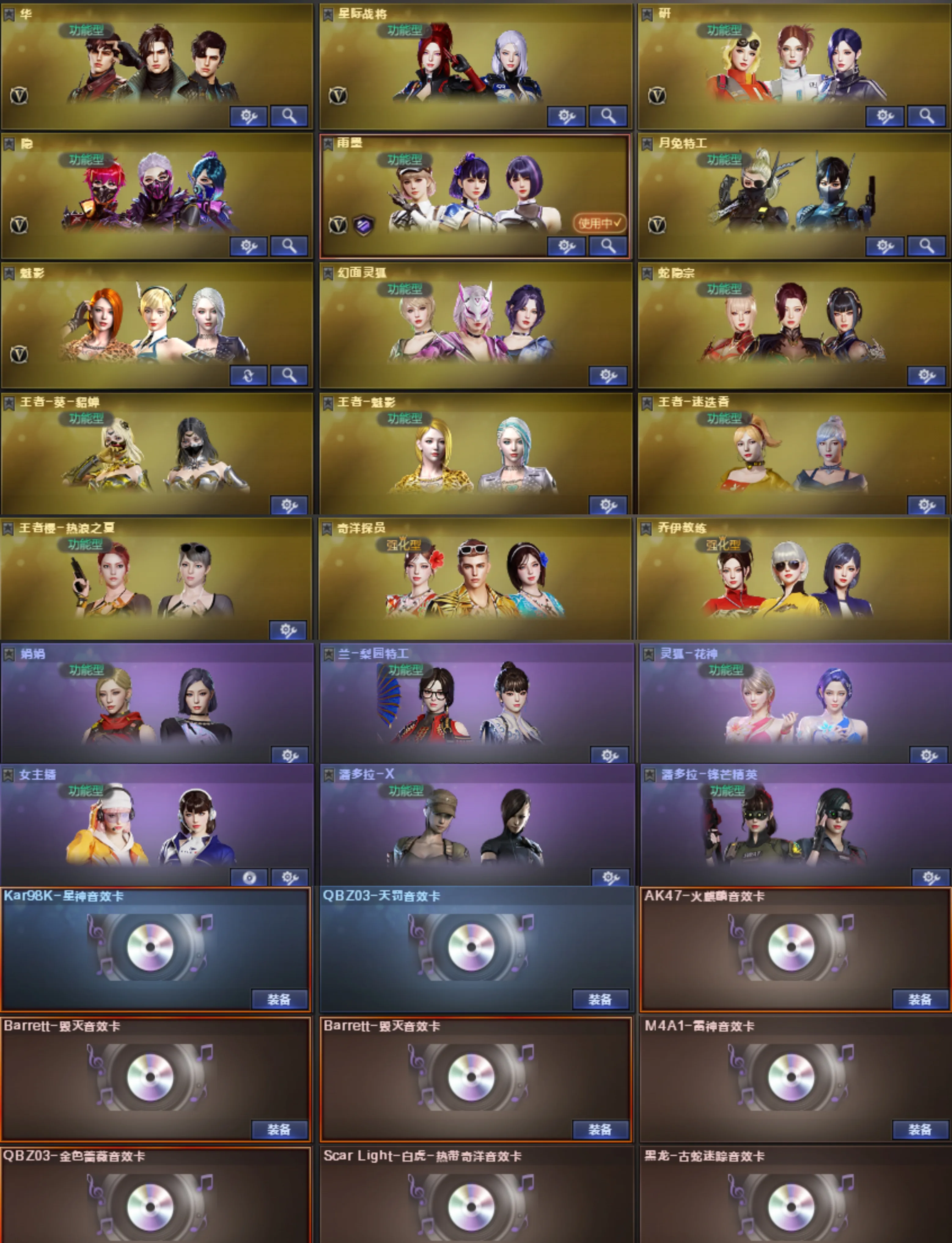 qbz三皮+音效卡:电竞之星皮 破浪逐光皮 量子蔷薇皮 金色蔷薇空小人枪