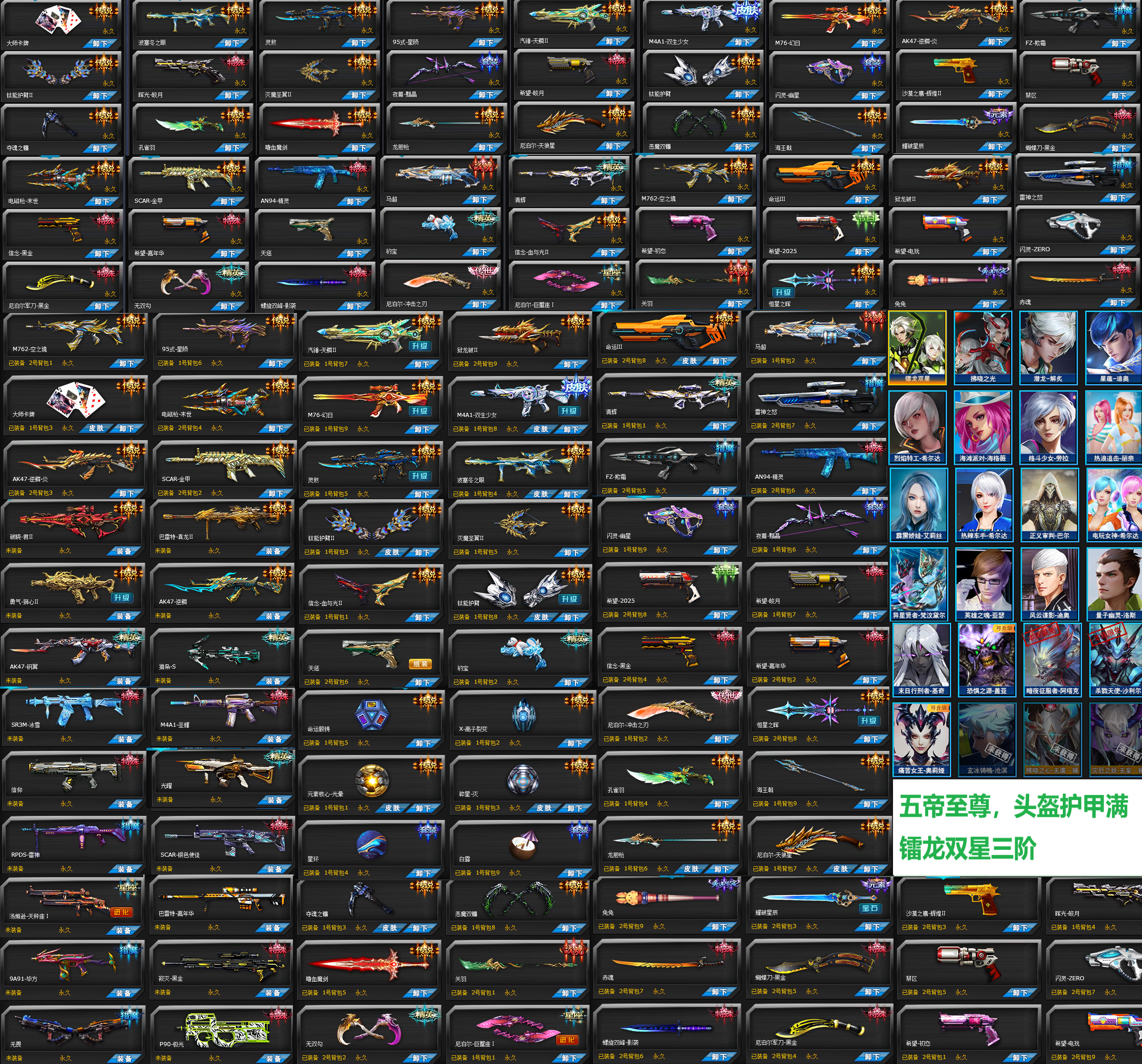 生化高级勋章传说小飞机,天鳞狱龙破,幻日凤舞双生少女,灵煞波塞冬空之镜星陨大师卡牌电磁枪末世,逆鳞炎金甲命运,马超清辉雷神之怒欺霜精灵,破晓君真龙狮心逆鳞,钢翼猎枭s,光耀天秤座无畏极光灭世,嗜血嘉年华,护臂灭魔圣翼血与光,豹宝闪灵幽星黯晶,皎月,闪灵希望初恋,冲击之刃恒星之晖,孔雀羽海王戟,龙胆枪天狼星,夺魂之镰源,恶魔双镰,嗜血魔剑关羽,无双勾巨蟹座兔兔,赤魂蝴蝶刀黑金,尼泊尔黑金,螺旋双峰影袭,命运骰铸,离子裂变,碎星灭,元素核心光晕,头盔护甲全满,镭龙双星,热浪追击丽奈,霹雳娇娃艾莉丝,异形贤者,亚瑟,痛苦女王。