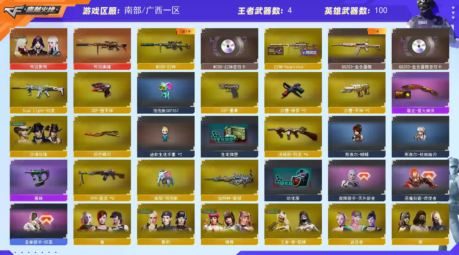 【允许排位】【南.部】生化天花板♥影煞炼狱泡泡象赋予♥六盘六烈蝴蝶♥幻神三件套♥白虎qbz主流武器齐全