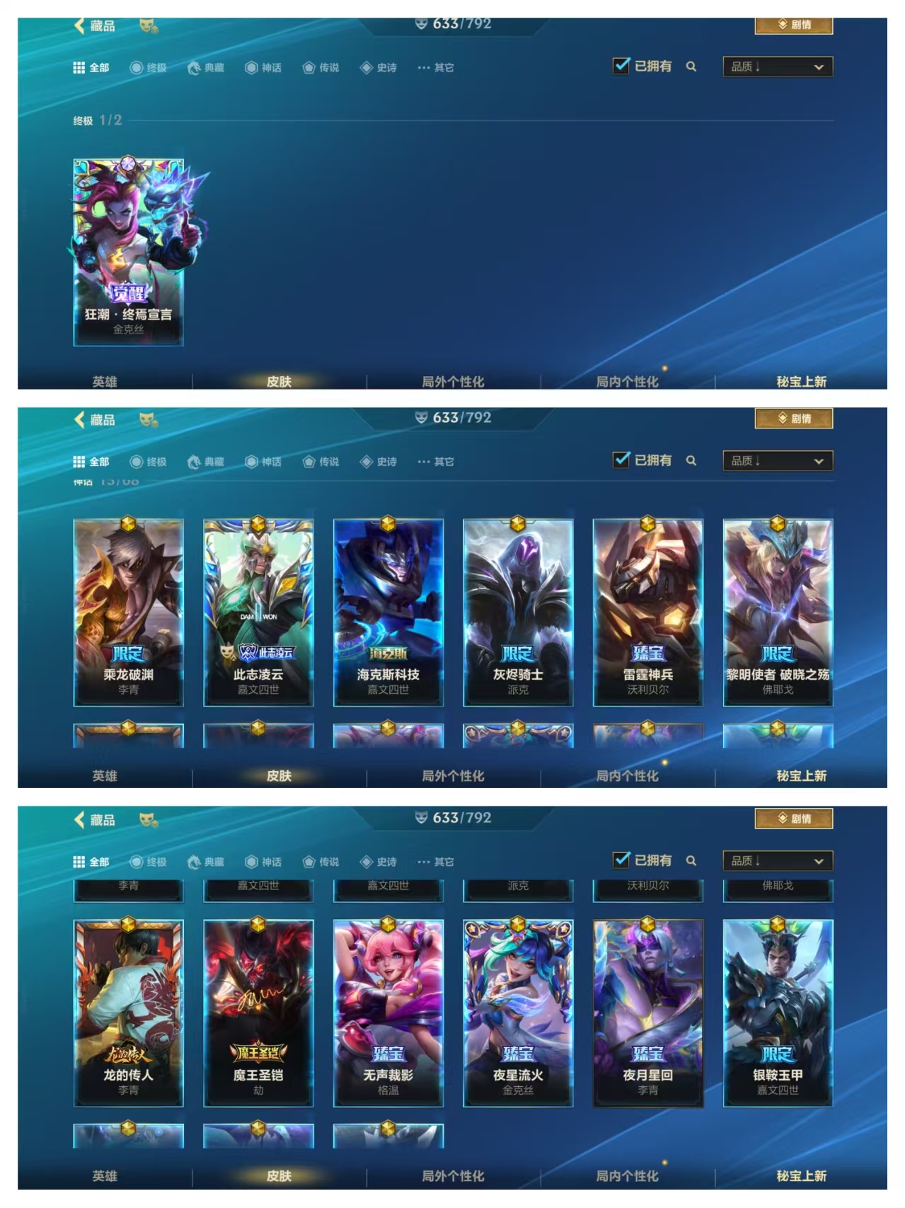 【安卓】 【魂】640皮终焉宣言终极金克丝已购✨魔王劫the shy剑魔已购🔯翡翠可排✅神话至臻佛耶戈🔯