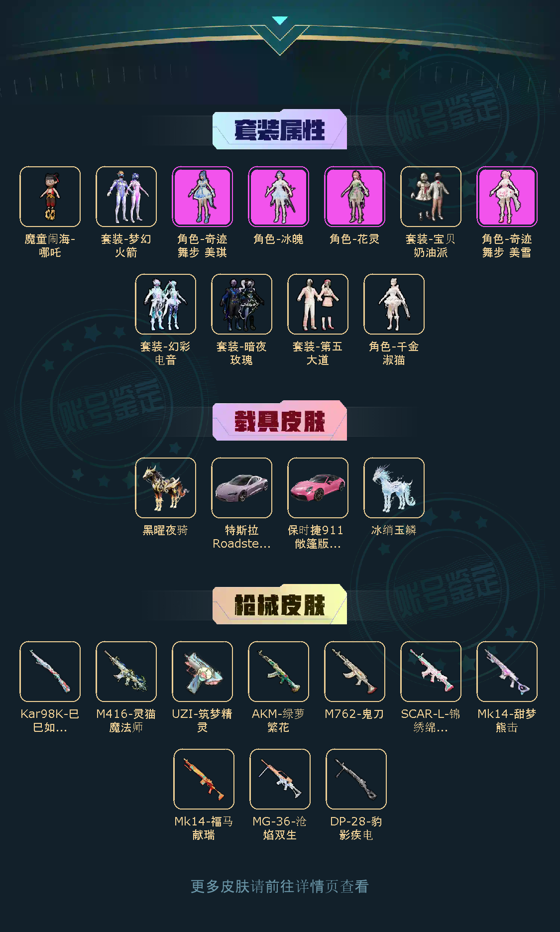 【粉色枪皮】SCAR-L-锦绣绵绵/AKM-绿萝繁花/M762-鬼刀/Kar98K-巳巳如意/Mk14-甜梦熊击/MG-36-沧焰双生/DP-28-豹影疾电/UZI-筑梦精灵