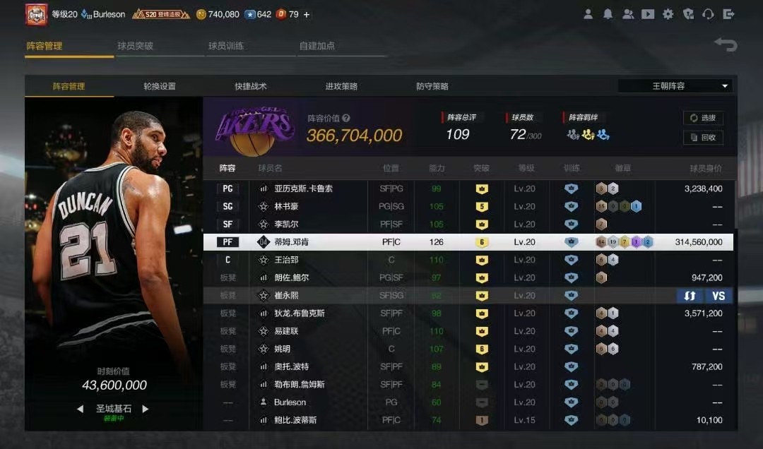 🔥【低段位可排位】6突小时刻“圣城基石”蒂姆邓肯!带王朝阵容,时装!紫徽章内线强度拉满,欢迎体验!
