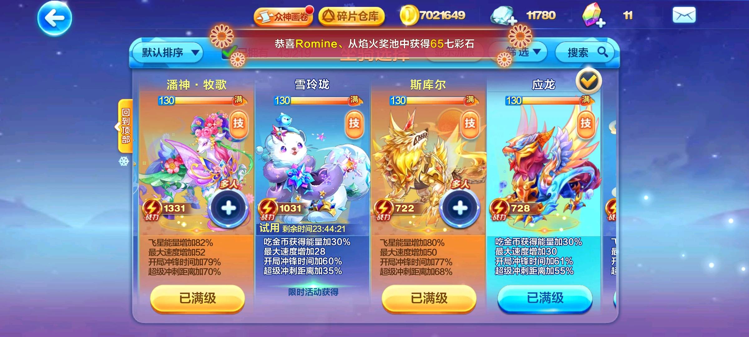里面有云中君,马超,潘神牧歌,热血冲鸭,以及竞速神宠,和经典神宠等等,不要开挂,多谢了