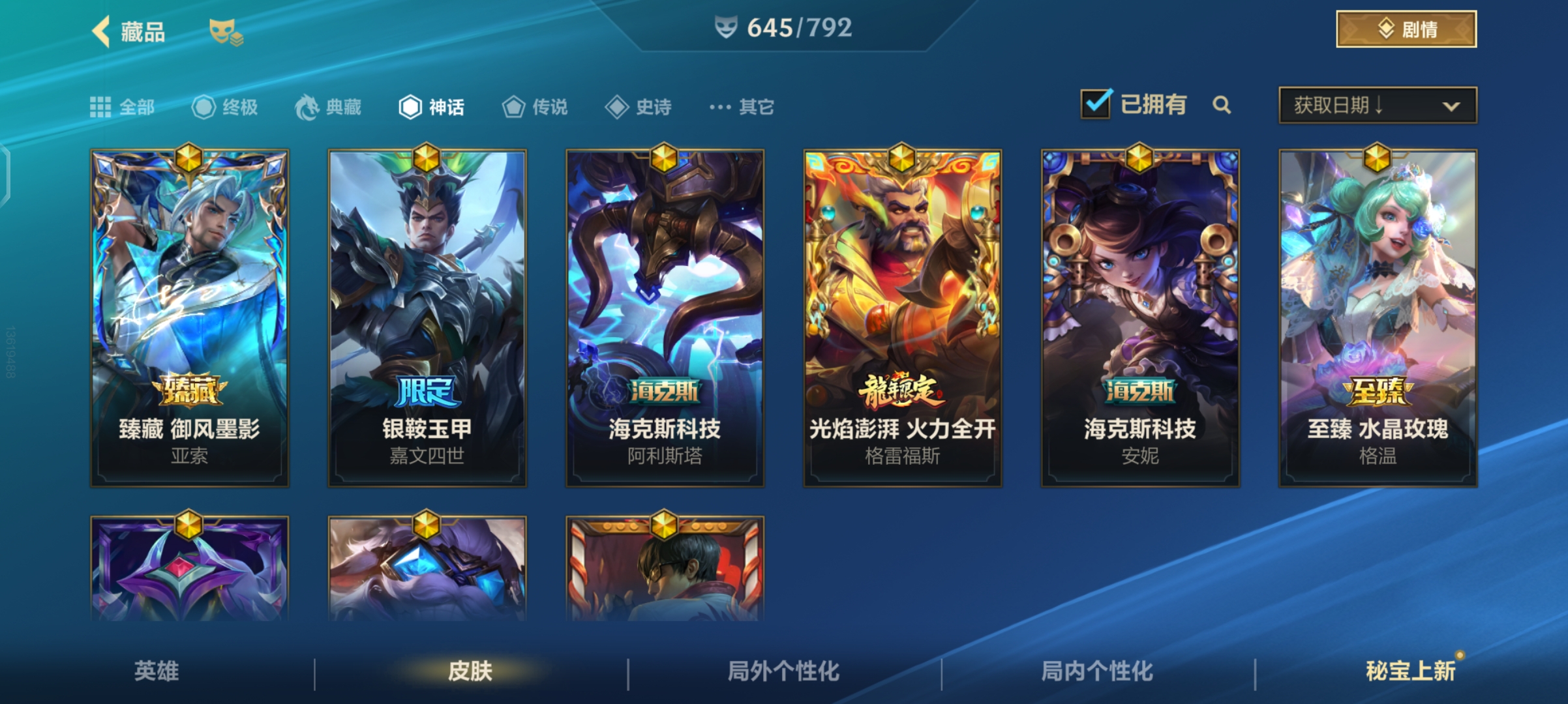 【安卓】 【禁止排位】11w收藏645皮2典藏三档金克丝/至臻亚索/天神下凡/至臻莫甘娜/至臻剑圣至臻辛德拉