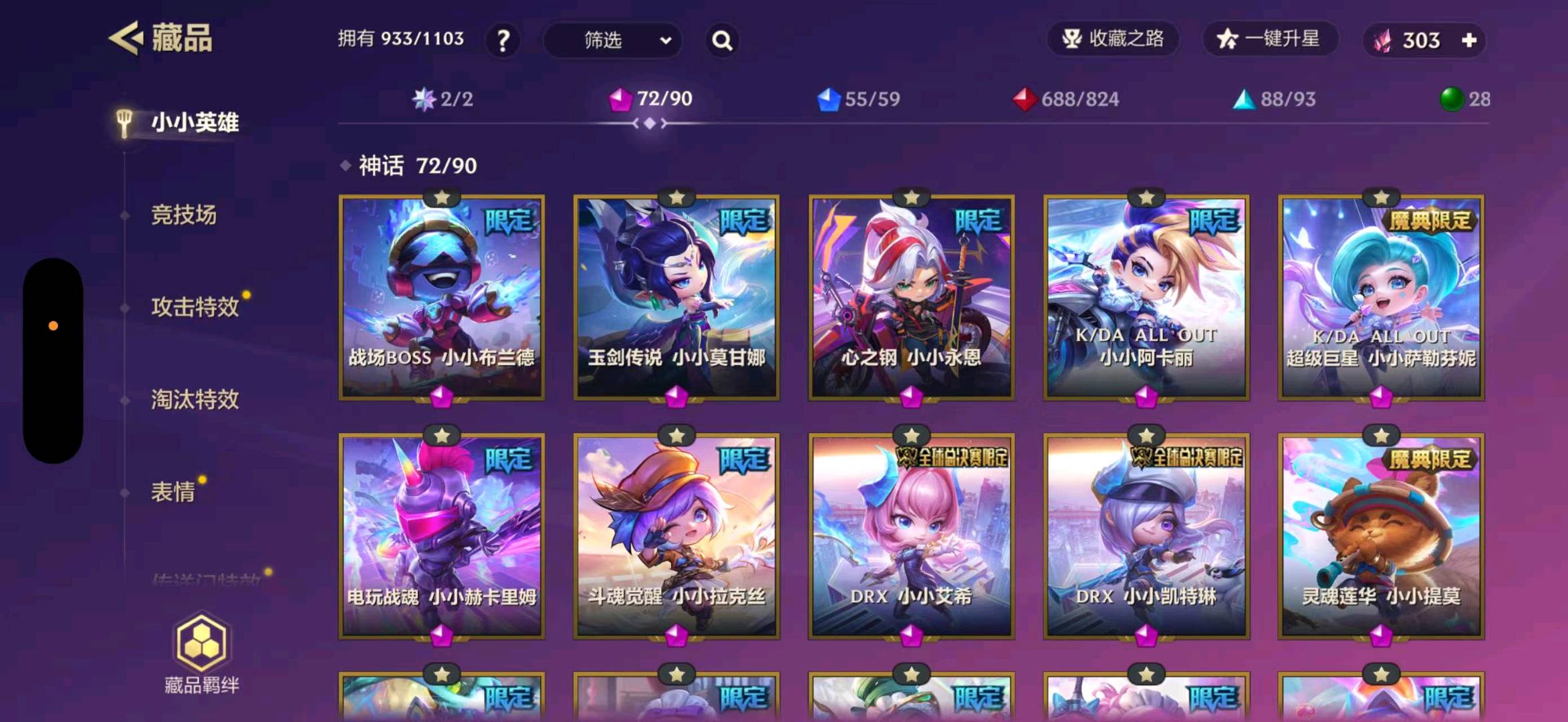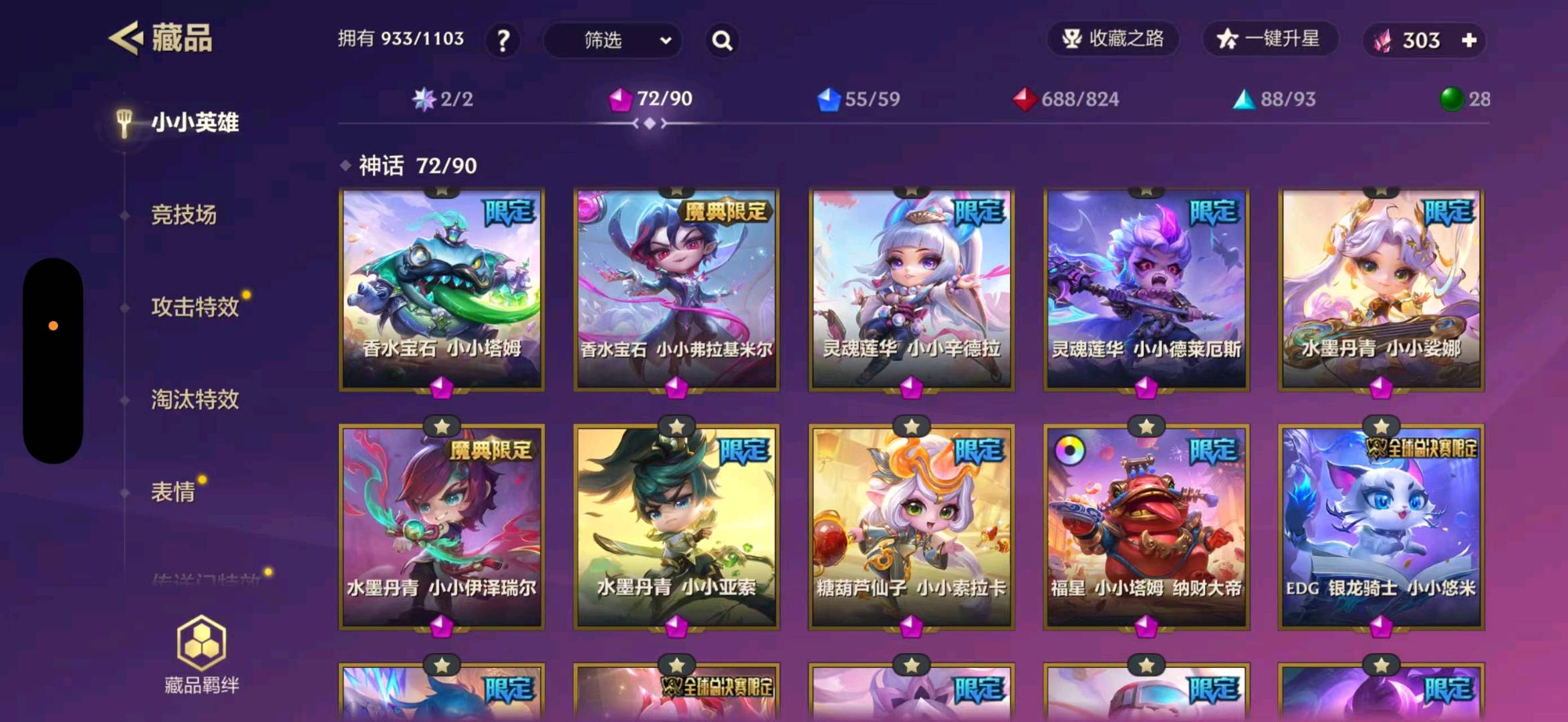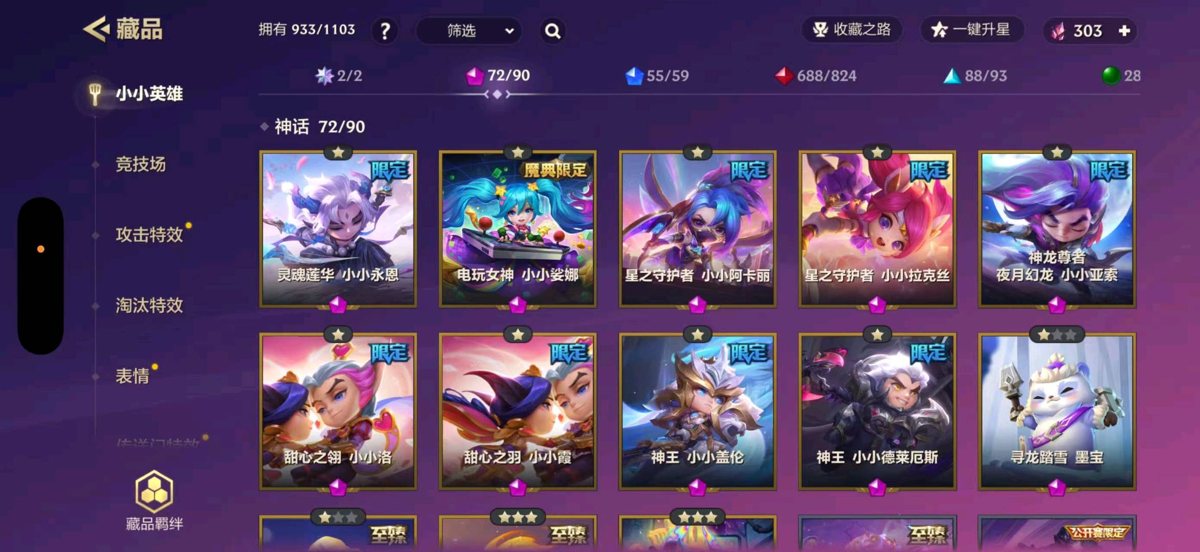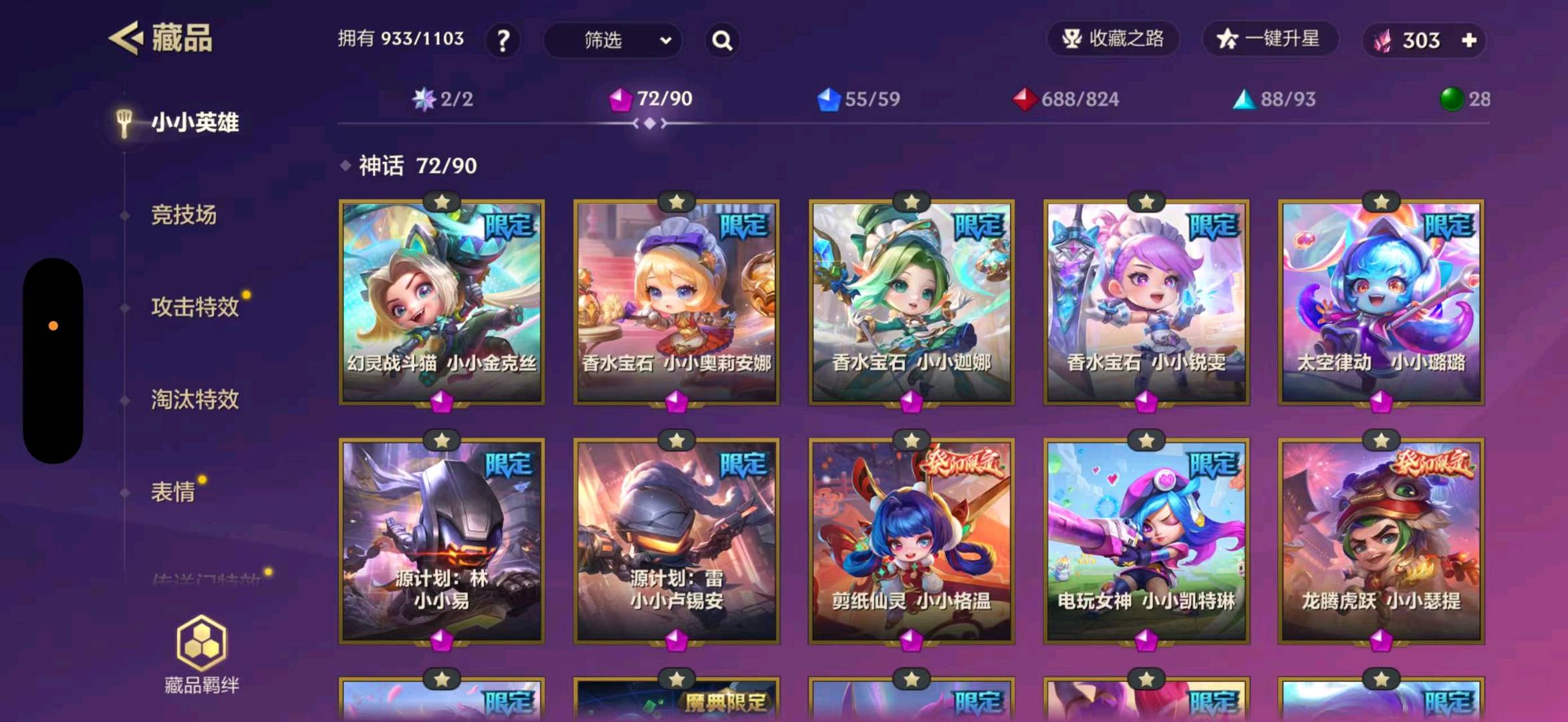 至臻白蛇风女 至臻福星塔姆 至臻龙女 至臻剪纸格温 至臻灵魂莲花永恩 至臻灵魂莲花薇恩 至臻香水宝石风女 至臻玉剑传说索拉卡 至臻辛德拉 三星胡子喵