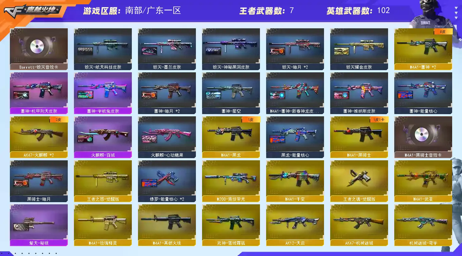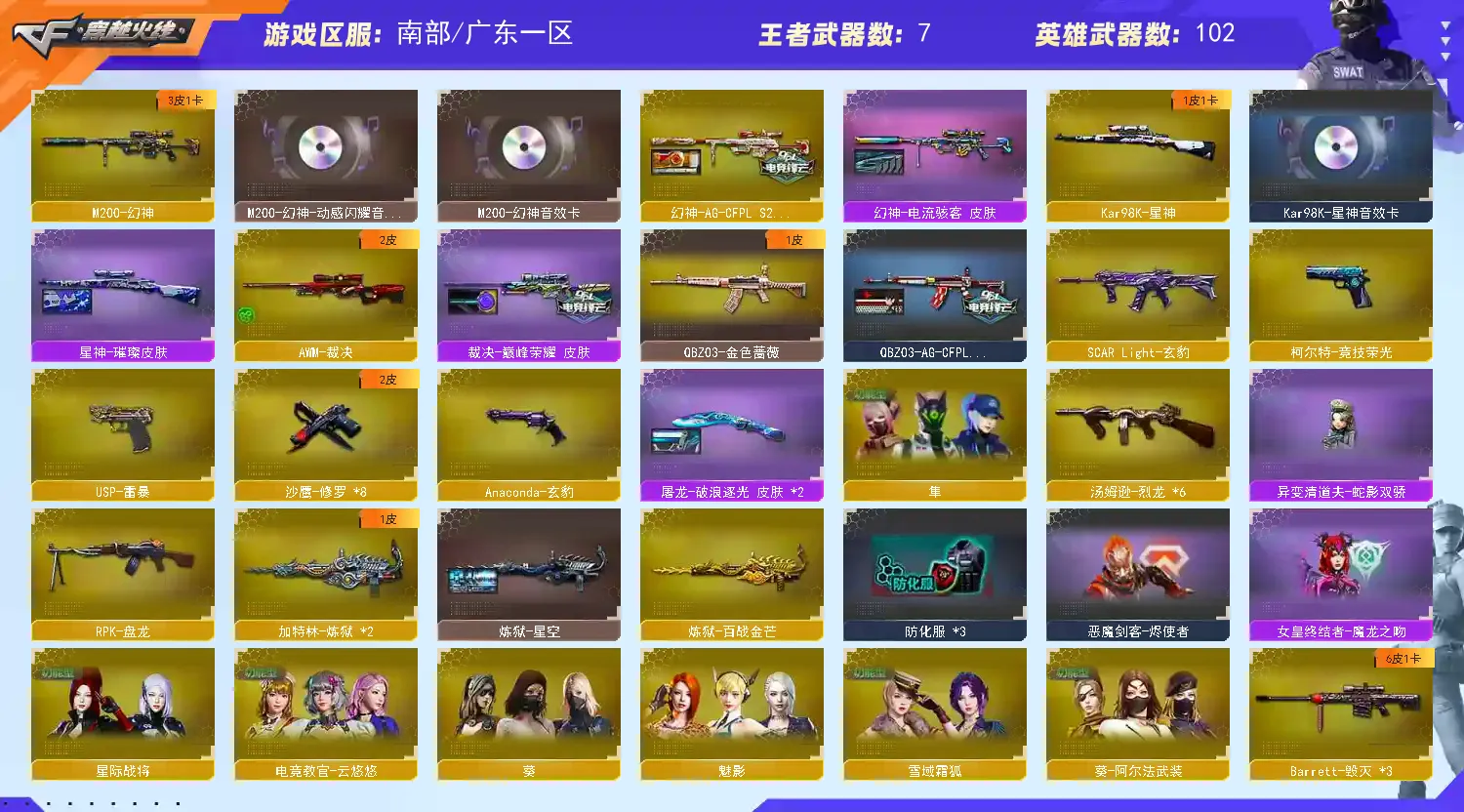 【M200-幻神+音效卡+ag24冠军+幻神电流骇客】【竞技荣光套+四防云悠悠+usp雷暴】【Kar98K-星神+音效卡+星神-璀璨】【QBZ03-金色蔷薇】【生化 盘龙 3炼狱 6烈龙 四防隼 异变清道夫蛇影 死亡之眼】【裁决+巅峰荣耀】【毁灭+音效卡】【玄豹套】【火麒麟】【黑龙】【雷神】【黑骑士+音效卡】【王者之怒】【千变 死神 天启 超新星 机械迷城】【14手枪 修罗*8 天神 usp雷暴 王者之魂】【15近战 屠龙*6 龙啸 擎天 麒麟刺 】【手雷 竞技荣光*2 玄豹*7】【四防 星际战将 隼】