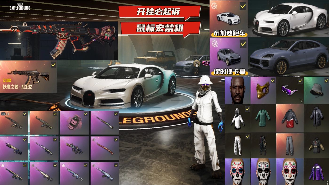 二级密123456可排✅布加迪跑车➕保时捷卡宴suv➕3级妖魔之触ace➕粉烟➕老黑白战神绿东多穿搭