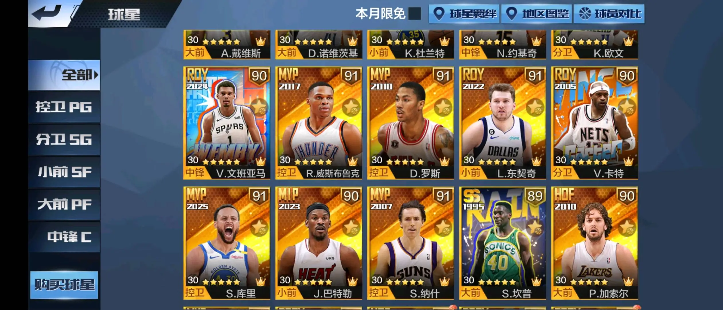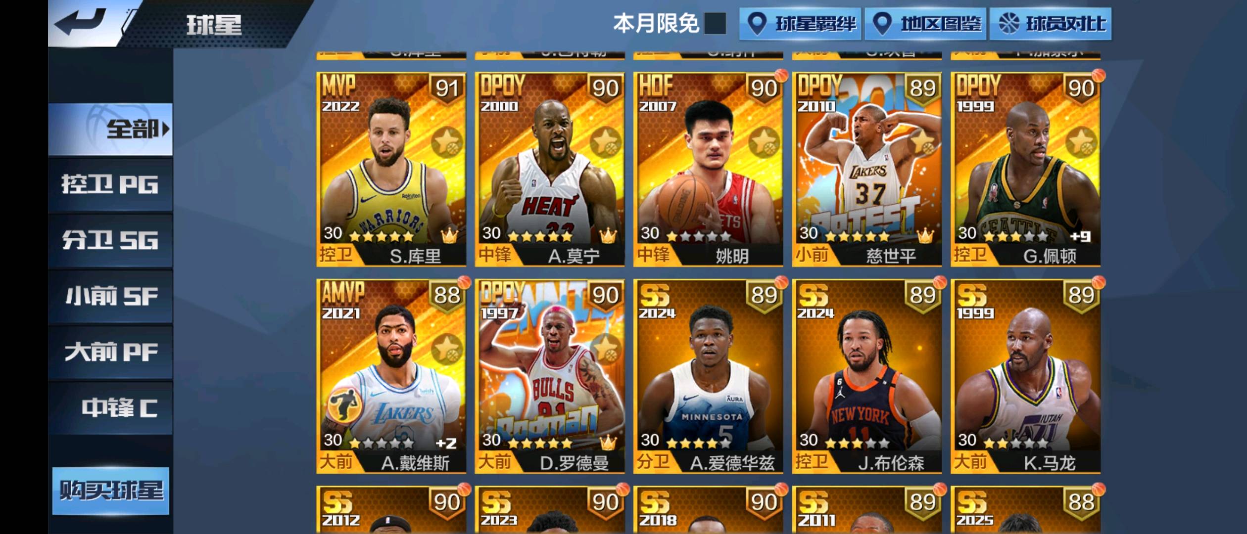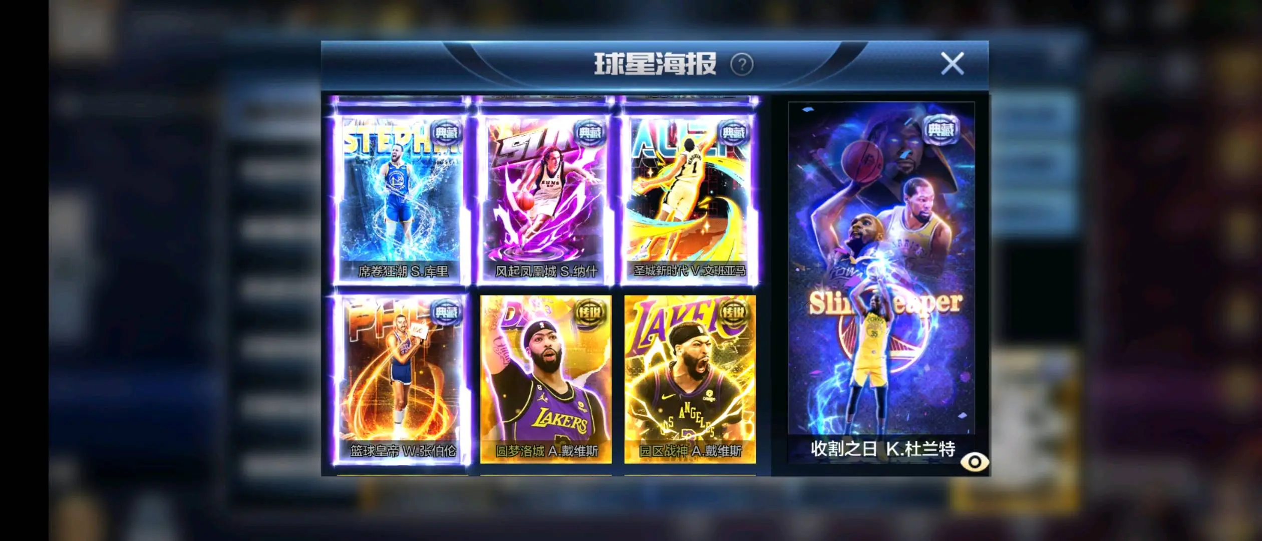 新科比 典藏新库里 典藏亚历山大 典藏新詹姆斯 典藏纳什 典藏幼詹 典藏张伯伦 典藏戴维斯 双典藏约基奇(两个典藏开满) 双典藏威少(两个典藏开满) 典藏老库里 典藏司机 典藏欧文 典藏杜兰特 典藏文班亚马 硬汉坎普 硬汉卡特 硬汉新大虫罗德曼