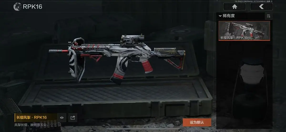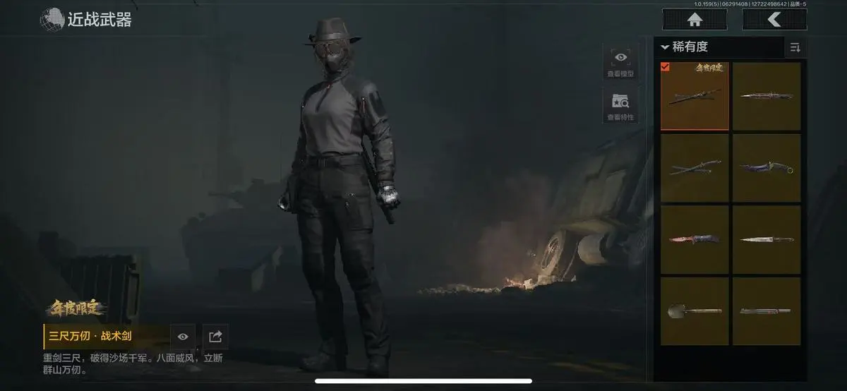 近战武器:三尺万仞战术剑,胜利军刀,明刀绣春,急袭弯刀,瑞兔折刀,突击匕首,工兵铲,来战开山刀;手套:玉鸾挂枝手套,战术甲胄防护手套,冬日手套;枪皮:竞技M4A1,自喷网格H416,来战AK74N,山地伪装AK74N,胜利锋刃AEK,涂鸦G18C,秩序G18C,碳黑M9A3,水陆迷彩G18C,战术大师M4A1.,真实之眼FAL,历战AKM,夏日风情AK102,缟兵玄墨VSS,玄戈梨花VSS,骑士之剑MK14,缟兵玄墨M110,玄戈梨花M110,全地形数码M110,滑雪季UMP45,自喷网格UMP45,荒漠涂绘T79,山地伪装Vector9,竞技Vector9,滑雪季Suomi,沙漠作战AX50,龙影Suomi,北国内卫AUG9,苏梅克UMP45,沙色Vector45,湖冰倒影MP5.,龙威MP5,缟兵玄墨MPX,玄戈梨花MPX,森林迷彩MP5.,激流MPX,飞鲨VSS,山地伪装MK14,异彩合金M14,橄榄绿M96,盛冬S12K,胜利锋刃S12K,林中人FAL,黄金H416,缟兵玄墨AKM,巅峰M4A1,德尔塔小队M4A1,长缨风掣AX50