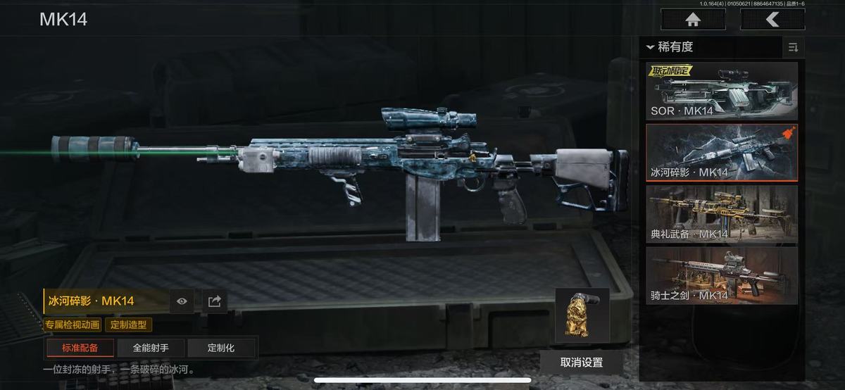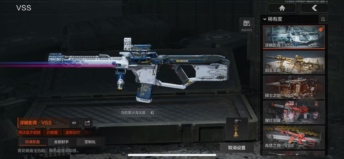 宇7300暗区:2橙衣12金衣15金刀4手套3橙枪20多金枪 瑞兔折刀 冥王 巴斯特 冰河碎影MK14