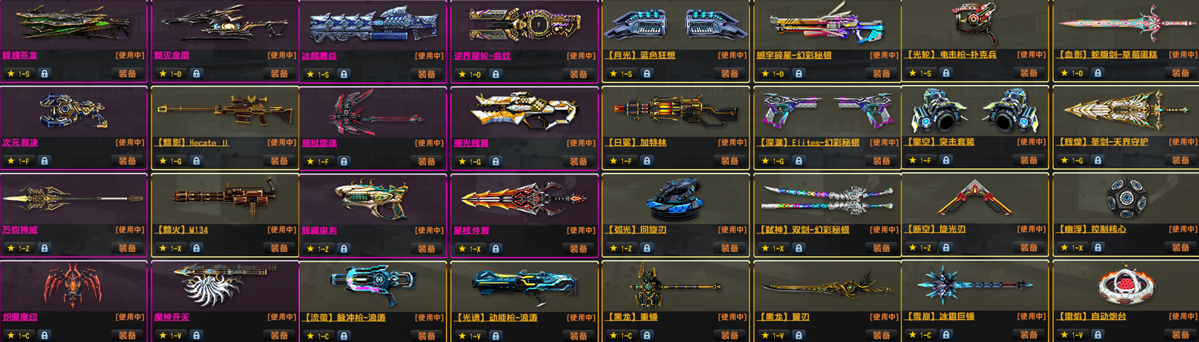 旋光刃●双黯四件套五特典狙机枪黯火黯影●四闪电机枪全套●金兔龙神威次元双雷●重铸怀旧套光束维京套