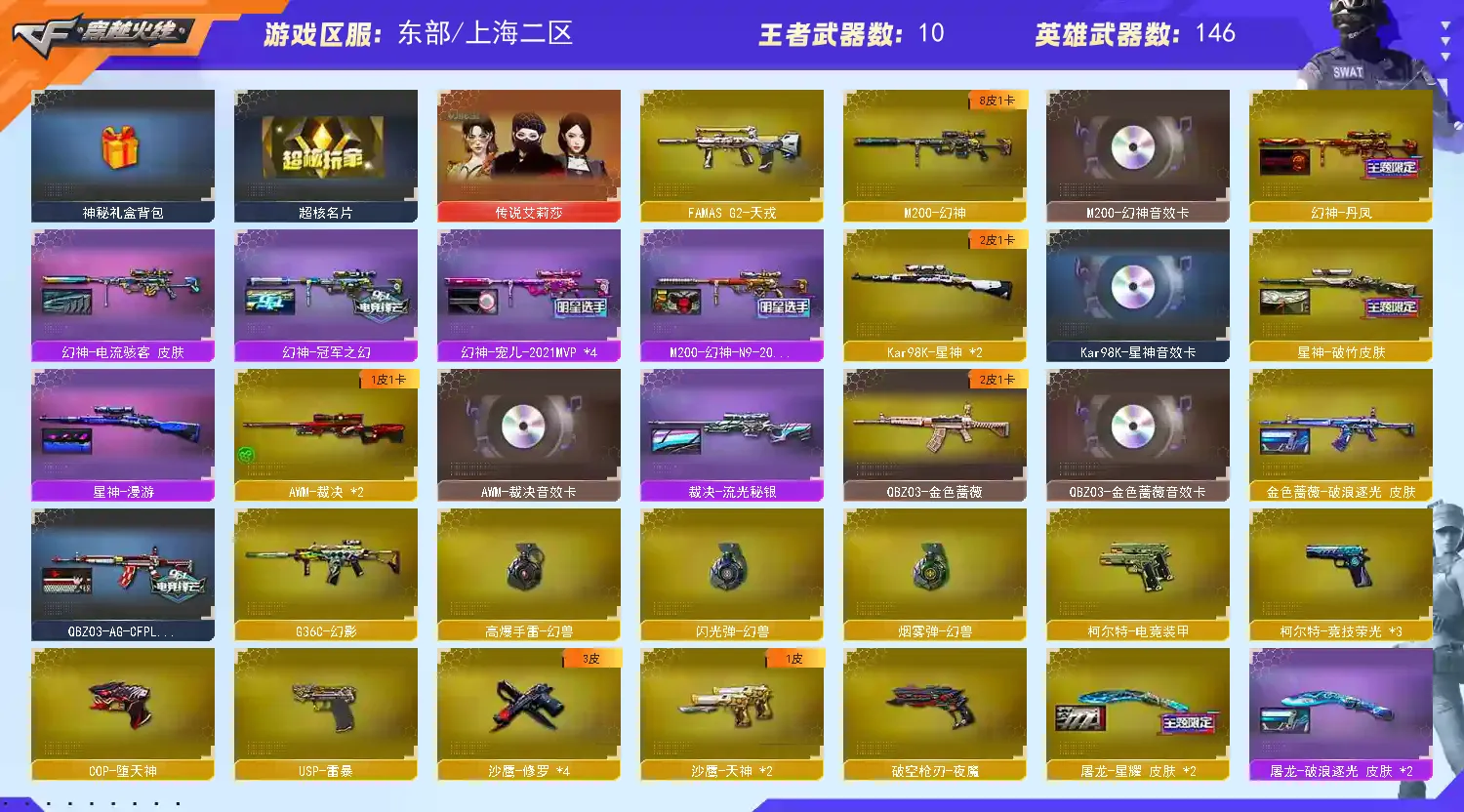 【允许排位】【生爆双全号】幻神三件套5皮⚡裁决三件套⚡星神三件套⚡G36C幻影⚡传说艾丽莎⚡6烈6盘蝴蝶炼狱小刚