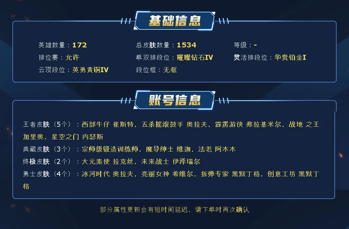~~喜欢记得收藏~~可排位~~1600皮全英雄~~租之前尽量查一下游戏ID,确保段位是您需要的,避免浪费您的时间~~请勿挂机逃跑故意送人头,谢谢合作,谢谢~~