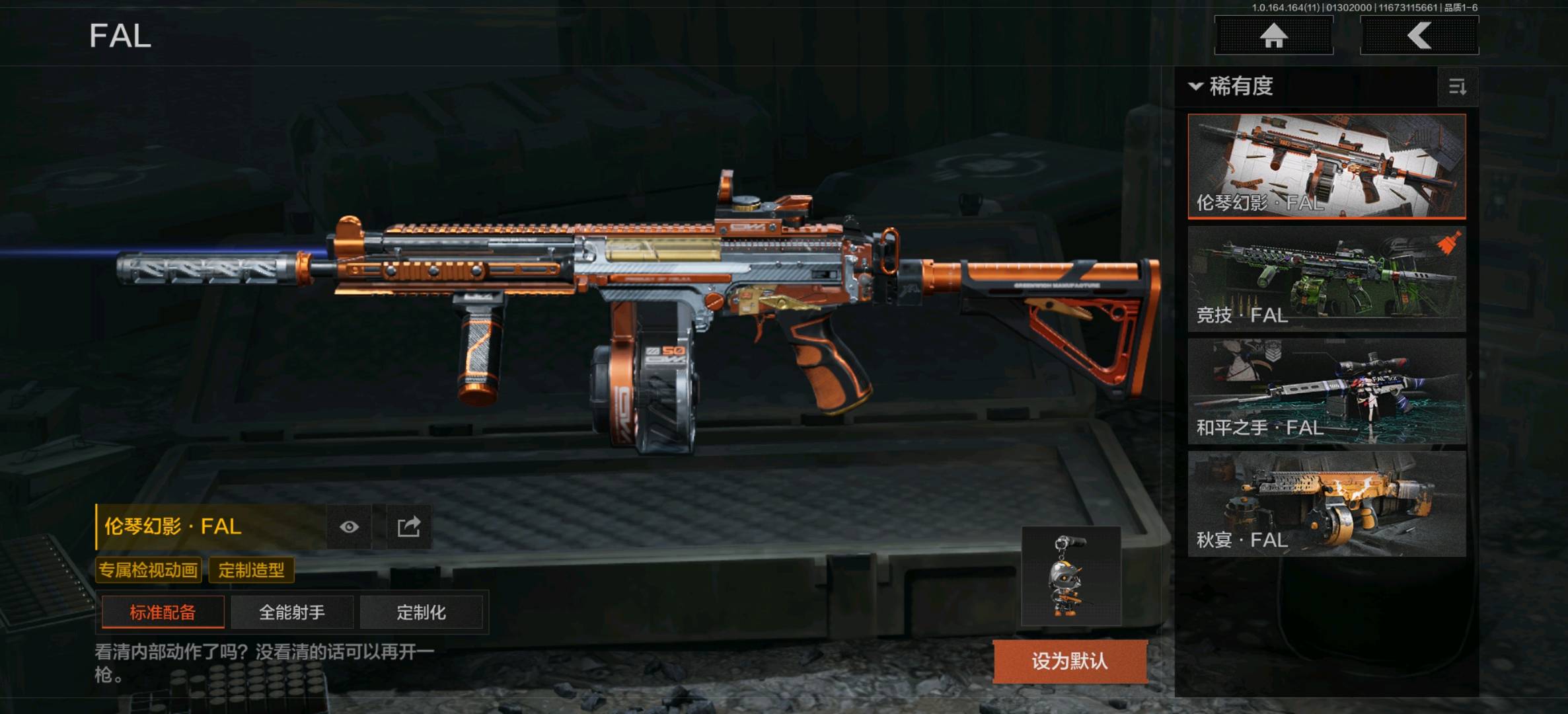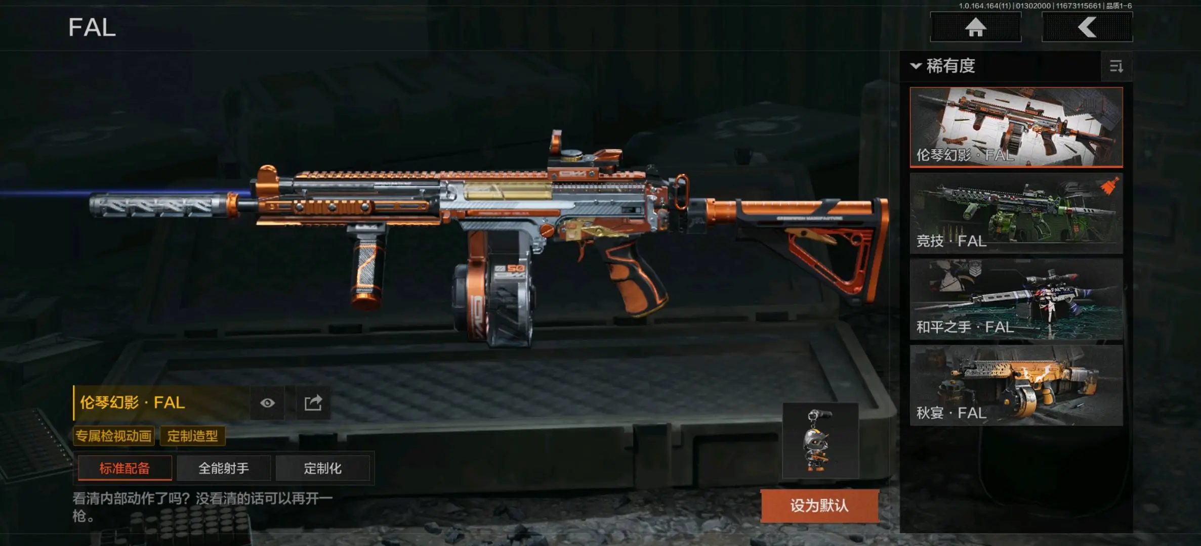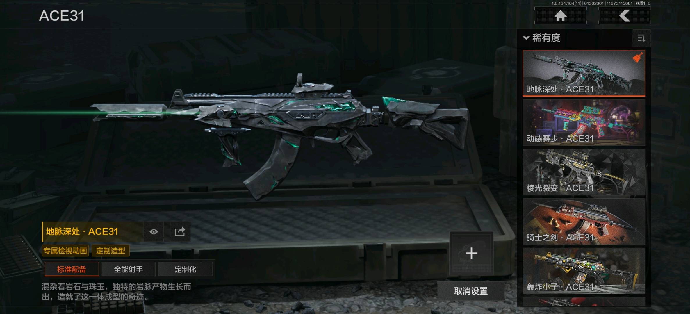 包络战术AKM,伦琴幻影FAL,竞技FAL,告丧夜曲AR57,地脉深处ACE31,战术大师AEK,旗帜AEK,战术大师AN94,旧王圣谕QBZ191,浮鳞影青QBZ192,和平先锋AKM,骑士之剑AKM,来战AKM,历战AKM,潜渊蛇鳞M4A1,猎手骸骨M4A1,骤羽尖啸M4A1,德尔塔小队M4A1,竞技M4A1,和平之手FAL,炎夏浪花H416,鱼跃丹青DTMDR,利齿风暴MDR,竞技MDR,北国内卫MDR,鱼跃丹青AK102,棱光裂变AK102,包络战术AK74N,战术大师AK74N,伦琴计量AK74N,来战AK74N,骑士之剑AKS74U,最后防线AKS74U,火力倾泻AUG,竞技AUG,钢铁真理F2000,危崖敌影F2000,深潜F2000,财团之手AR57,炎夏浪花AR57,无声暗月AR57,动感舞步ACE31,棱光裂变ACE31,骑士之剑ACE31,轰炸小子ACE31,最后防线AEK,粉绒臻选AN94,伦琴计量AN94,北国内卫AN94,阴影AN94,近卫标记Groza,骑士之剑Groza,典礼武备Groza,宝石籽料FAMAS,伦琴计量SCAR,宝石籽料T951,巡林客T951,伦琴计量T951,百锻寒芒T951,飞鲨T951,骑士之剑T03,利齿风暴T03,百锻寒芒T03,深潜T03,鱼跃丹青MCX,典礼武备MCX,宝石籽料AR15;