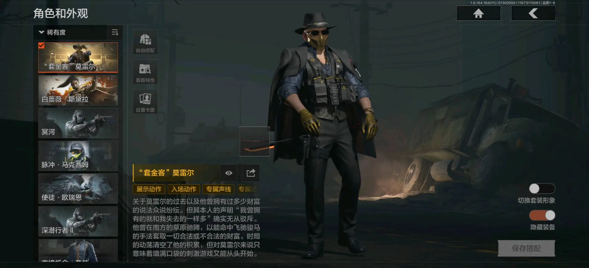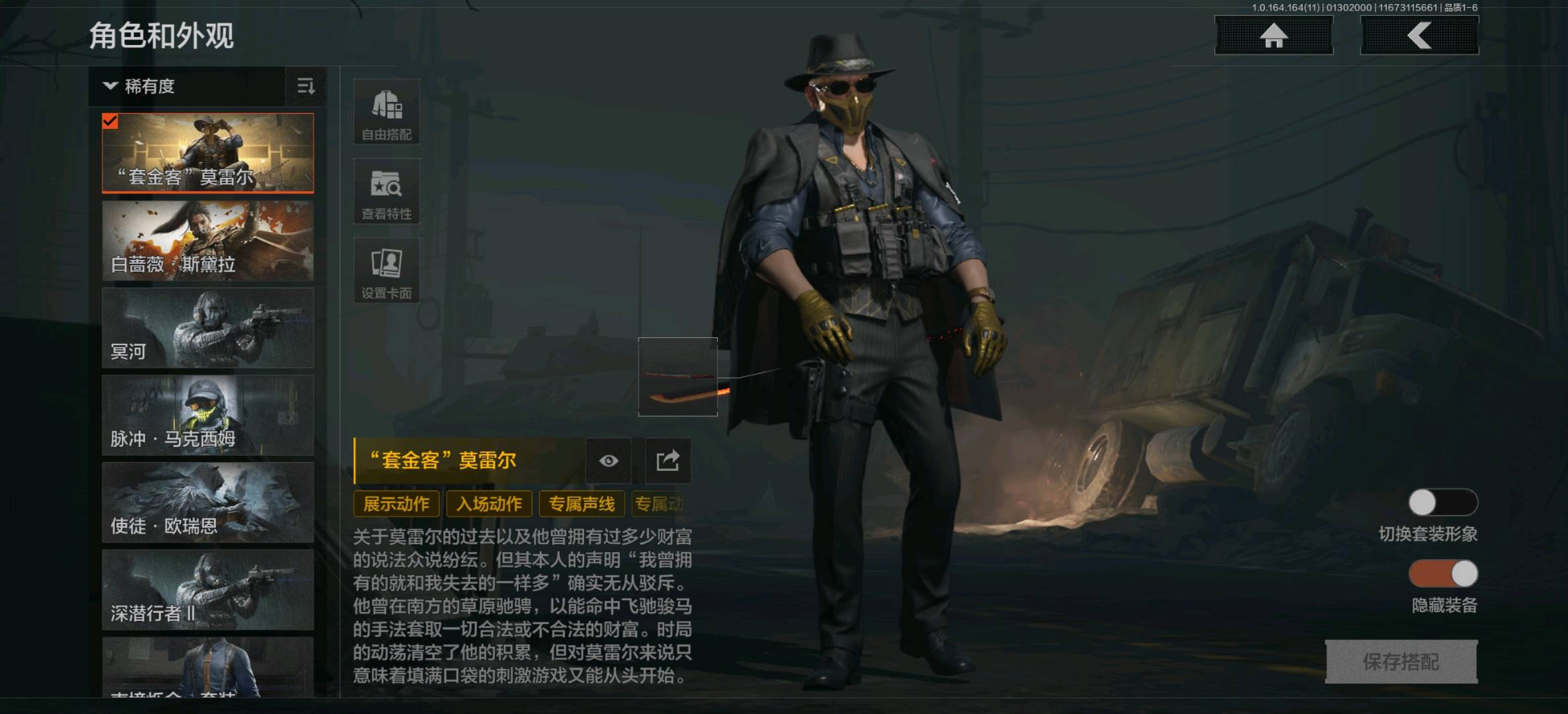 白蔷薇斯黛拉,冥河,脉冲马克西姆,使徒欧瑞恩,深潜行者II,和平先锋作战套装,财团之手作战套装,使徒瑞文,鎏金街头套装,暴恐机动队外勤服饰,都市夜影套装;冬日手套;