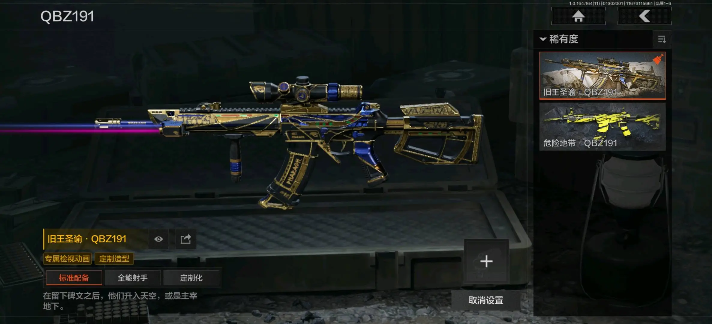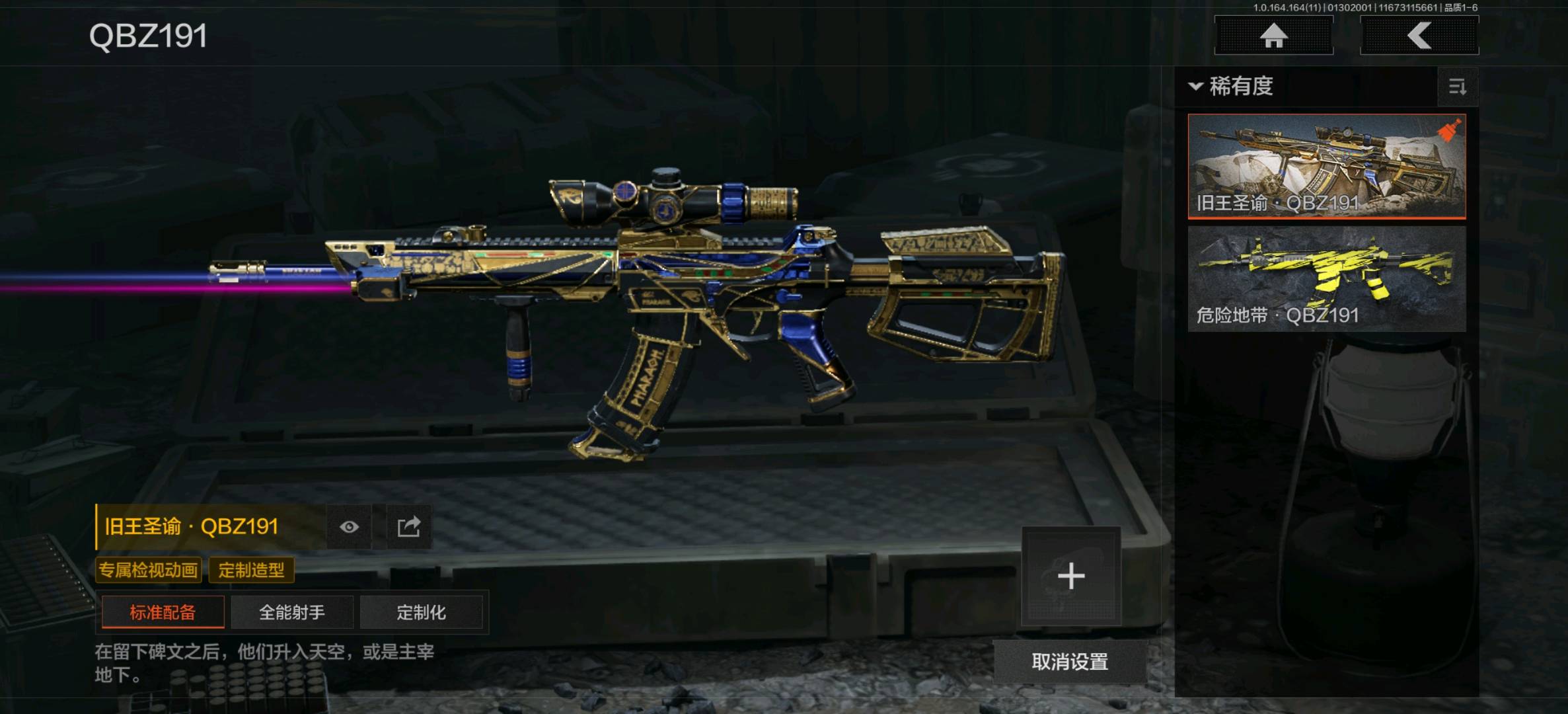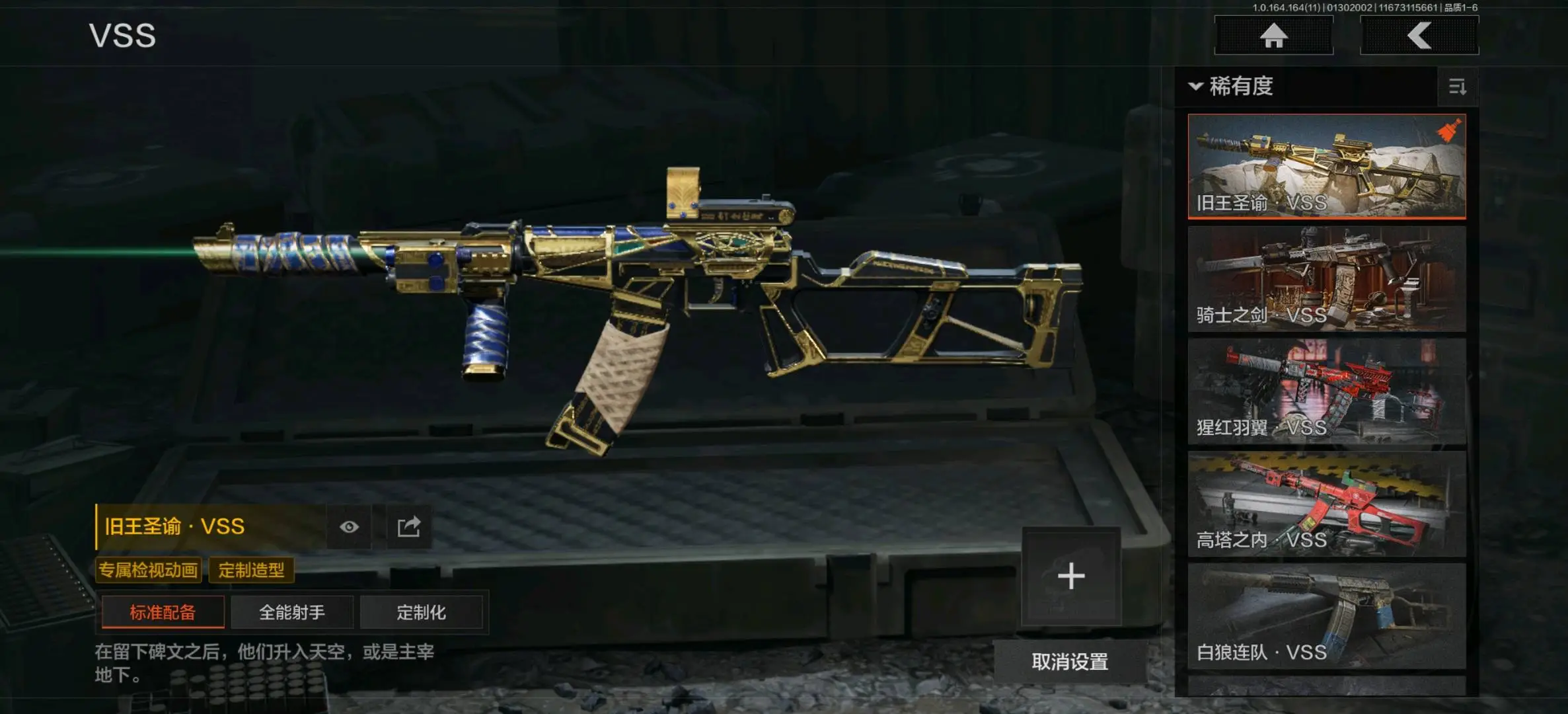 旧王圣谕VSS,骑士之剑VSS,棱光裂变QBU191,战术大师SVDS,伦琴计量SVDS,高塔之内VSS,白狼连队VSS,典礼武备MK14,骑士之剑MK14,鱼跃丹青M110,竞技M110,全地形数码M110,鱼跃丹青QBU191;