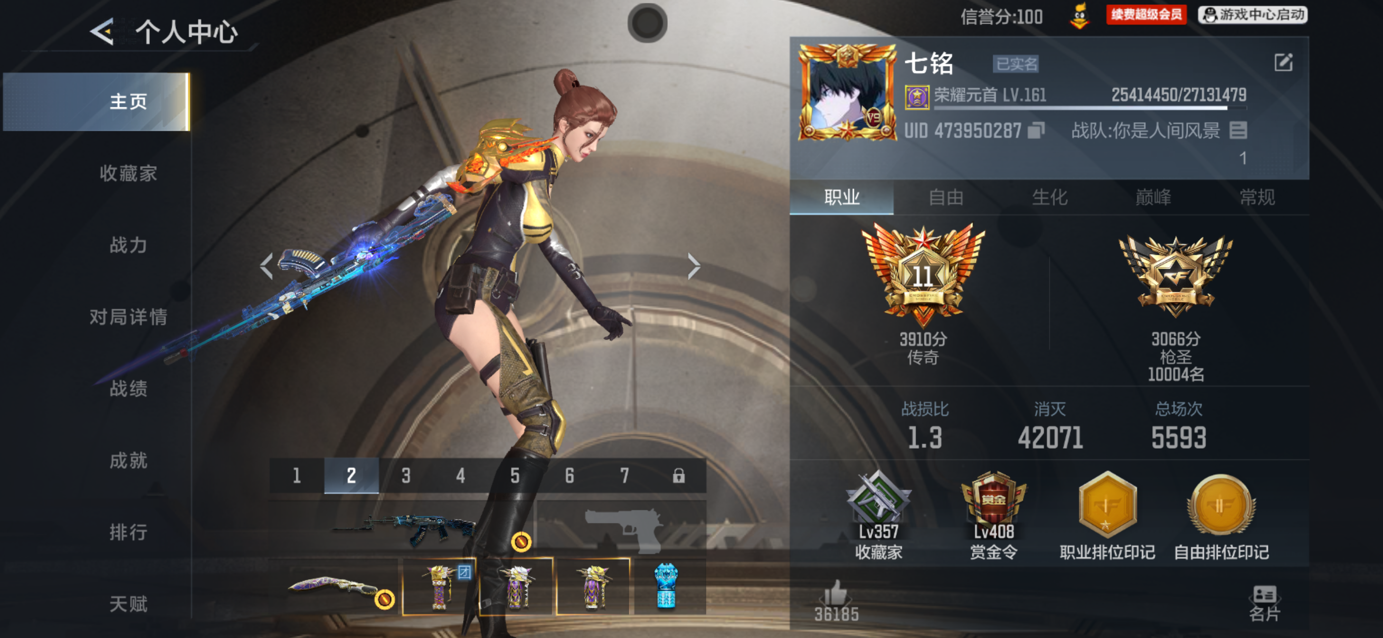 - 职业排位段位: 枪圣