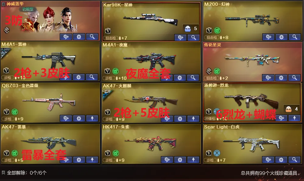 生化爆破号✅神威莲华传说圣灵✅幻神+星神✅6烈龙蝴蝶+USP雷暴✅白虎朱雀金色蔷薇✅雷暴夜魔全套