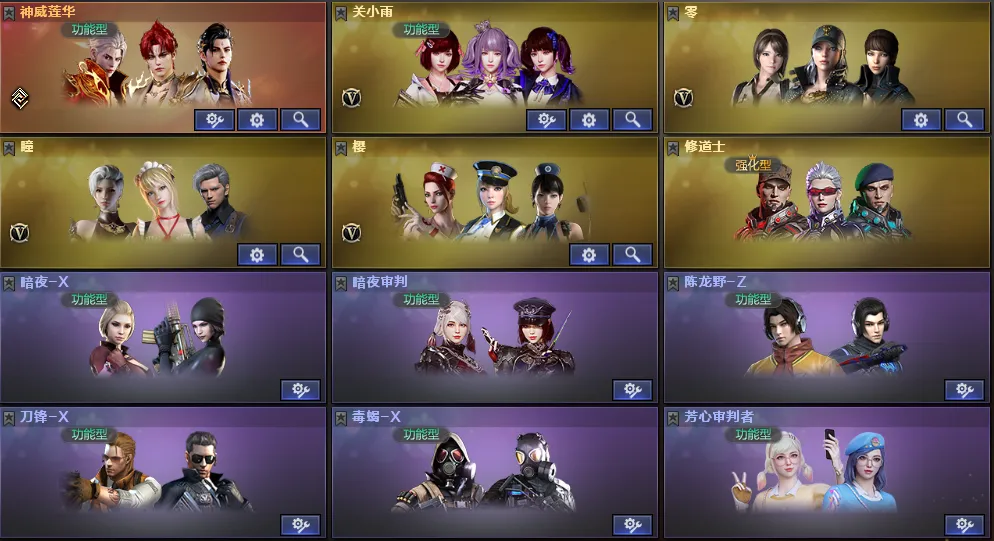稀有角色:神威莲华、关小雨、零、瞳、樱、修道士、暗夜X、暗夜审判、陈龙野Z、刀锋X、毒蝎X、芳心审判者、零水下丽影、齐天大圣、影武者X