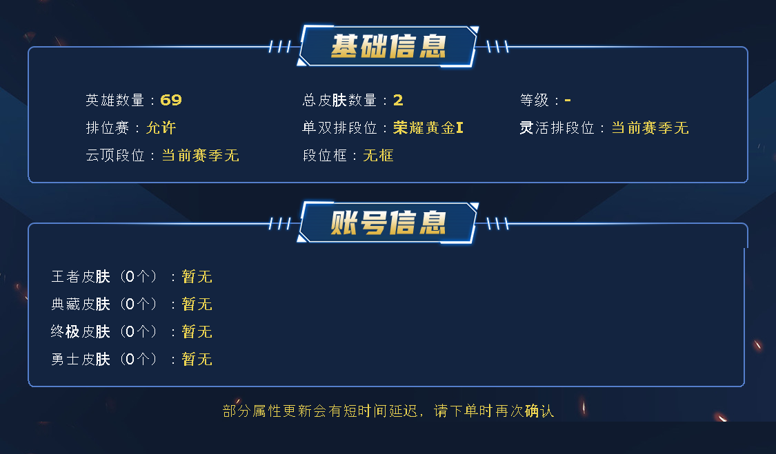 【毁号涉及毁坏虚拟财产罪及计算机安全罪】PS:本公司有专门的售后团队和法务部,如开挂、鼠标宏,第三方软件等原因造成账号封禁财产收到,必追责索赔到底。避免给自己带来不必要的麻烦,还请健康文明游戏!禁止开挂异常游戏 ⭐账号信息 ⭐店铺每天都会更新各种优质账号⭐喜欢可右上角收藏、方便下次租用。祝亲游戏愉快!!!【如遇上不了号咨询客服,客服24小时配合上号】