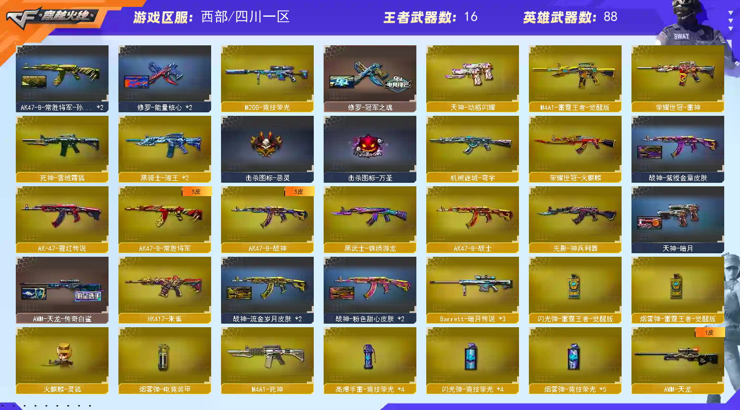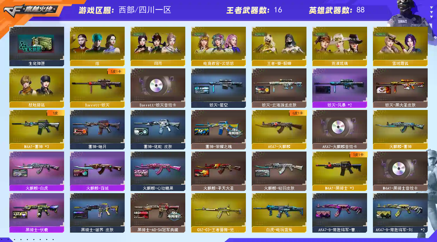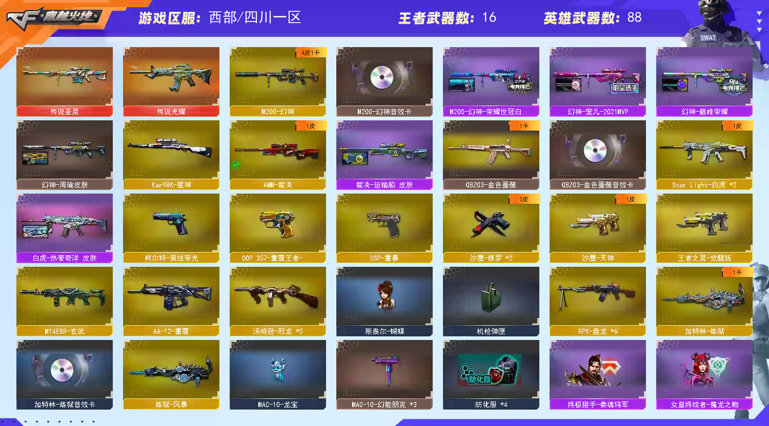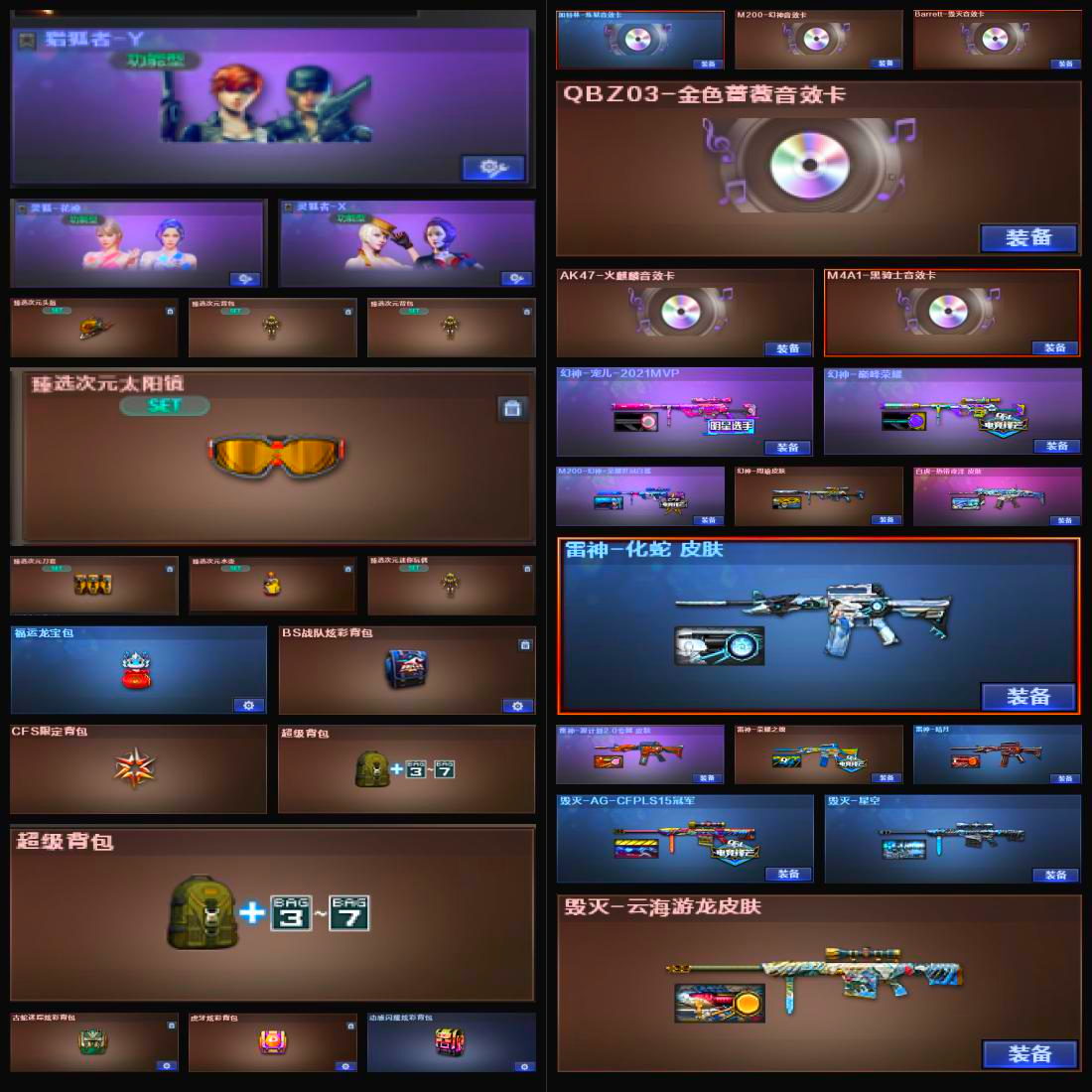 【亮点解析 幻神4皮带卡 生化挑战高配 挑战九阶 哔哩哔哩名片】【m200幻神+音效卡+宠儿+荣耀世冠白鲨+巅峰荣耀+周瑜】【98k星神】【m200竞技荣光套+usp雷暴+四防云悠悠】【6盘龙 炼狱+卡 6烈龙 斯太尔蝴蝶 mac龙宝 擎天柱 臻选套 】【传说光耀(1435)】【传说圣灵】【scar白虎】【qbz金色蔷薇+卡】【hk417朱雀】【玄武】【火麒麟+卡】【雷神+荣耀之魄】【黑骑士+卡】【毁灭+卡+ag15冠军】【裁决】 【武器:海王 荣耀世冠火麒麟 荣耀世冠雷神 qbz王者蔷薇 雷霆王者 】 【8手呛:修罗*2 天神*2 usp雷暴 竞技荣光 雷霆王者 】 【12刀具:屠龙*2 擎天 麒麟刺 王者之啸 王者之击 尼泊尔雷霆 龙啸 】 【5雷套:竞技荣光雷*4 雷霆王者雷】 【小人呛:火麒麟灵狐 毁灭孙三炮 】 【音效卡:炼狱音效卡 火麒麟音效卡 黑骑士音效卡 金色蔷薇音效卡 幻神音效卡 毁灭音效卡 】 【四防角色:云悠悠 荒漠琉璃 王者葵貂蝉 职业经理】