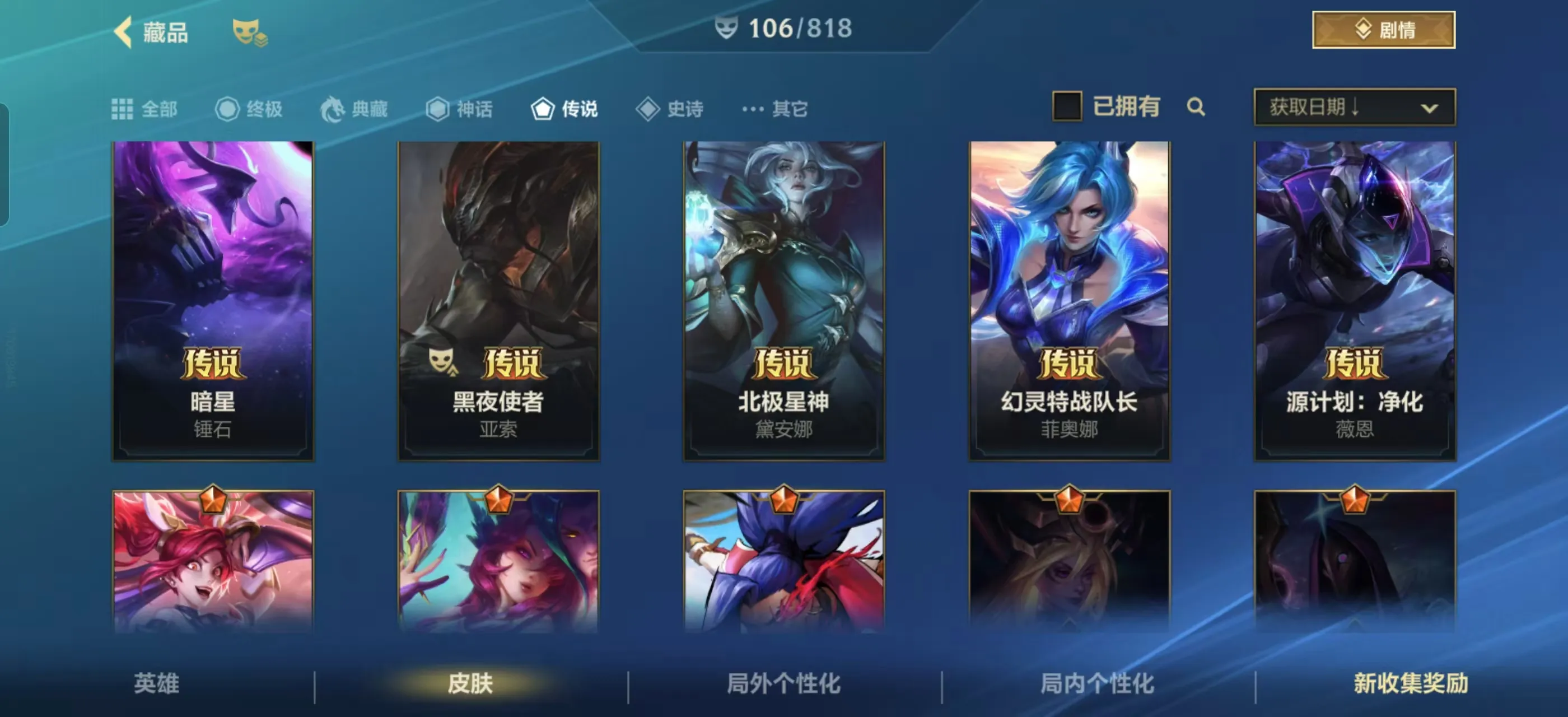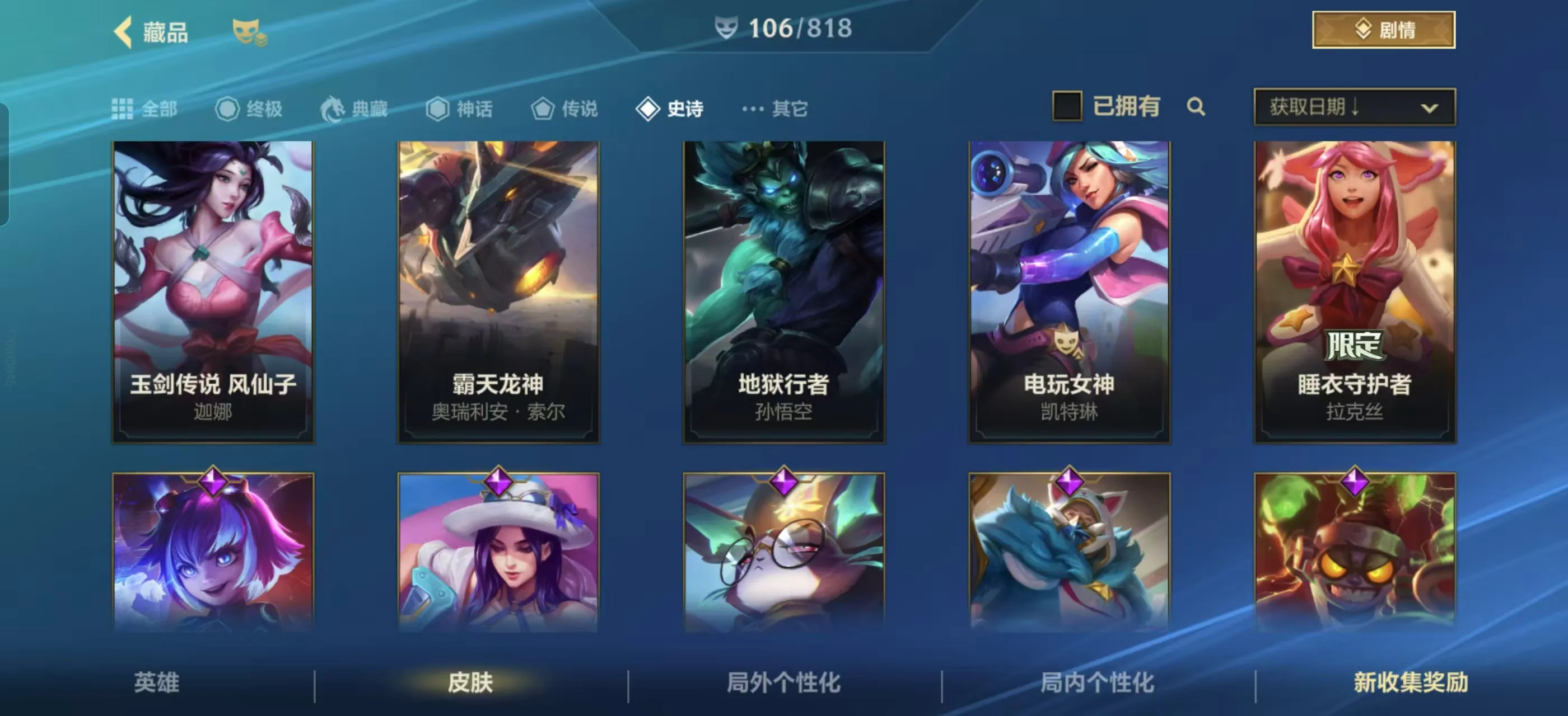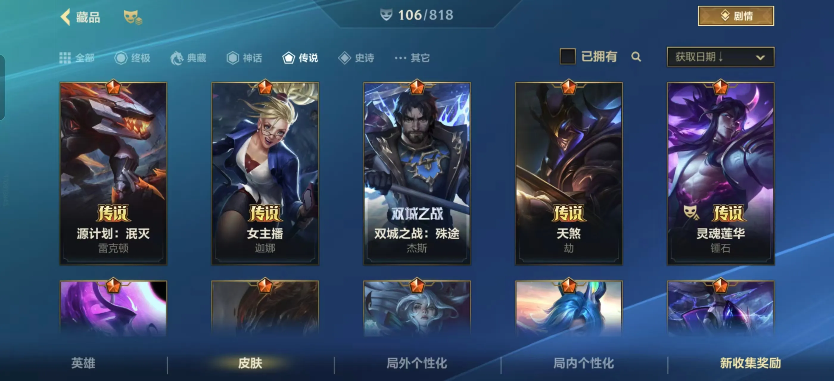 3神话❤️122皮肤❤️16传说❤️水晶腕豪❤️深海莫甘娜