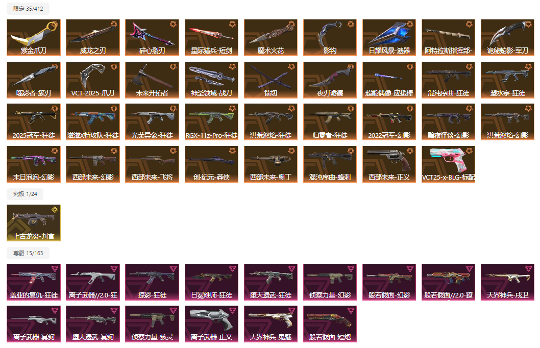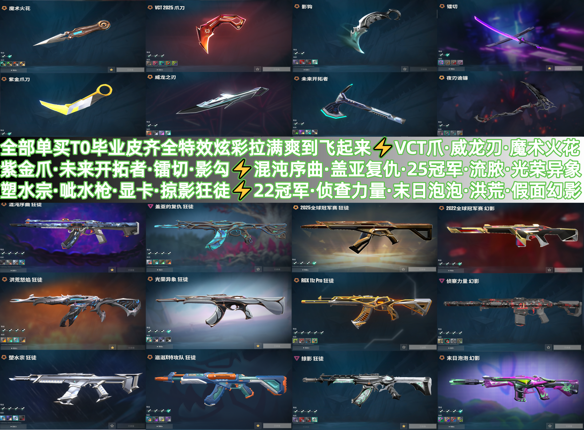 【当前段位:黄金II】全部单买T0皮拉满⚡VCT威龙魔术火花影勾开拓者⚡25冠军混沌盖亚异象流脓显卡ak⚡22冠军侦查幻影