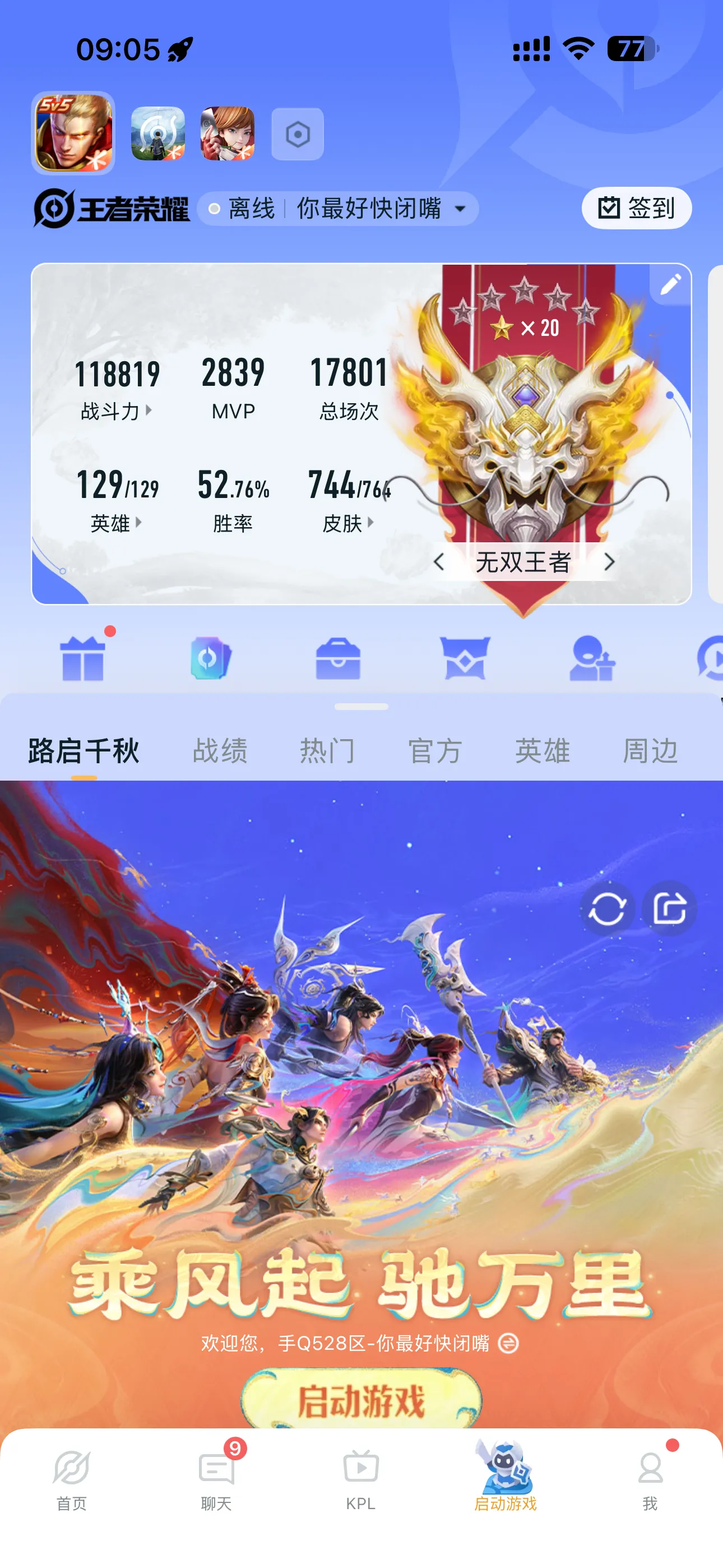 - 当前段位: 荣耀皇冠Ⅲ