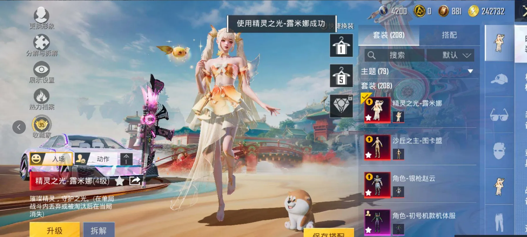 【3红装】 精灵之光-露米娜 (4级) 沙丘之主-图卡盟 (1级) 银枪赵云 (1级)