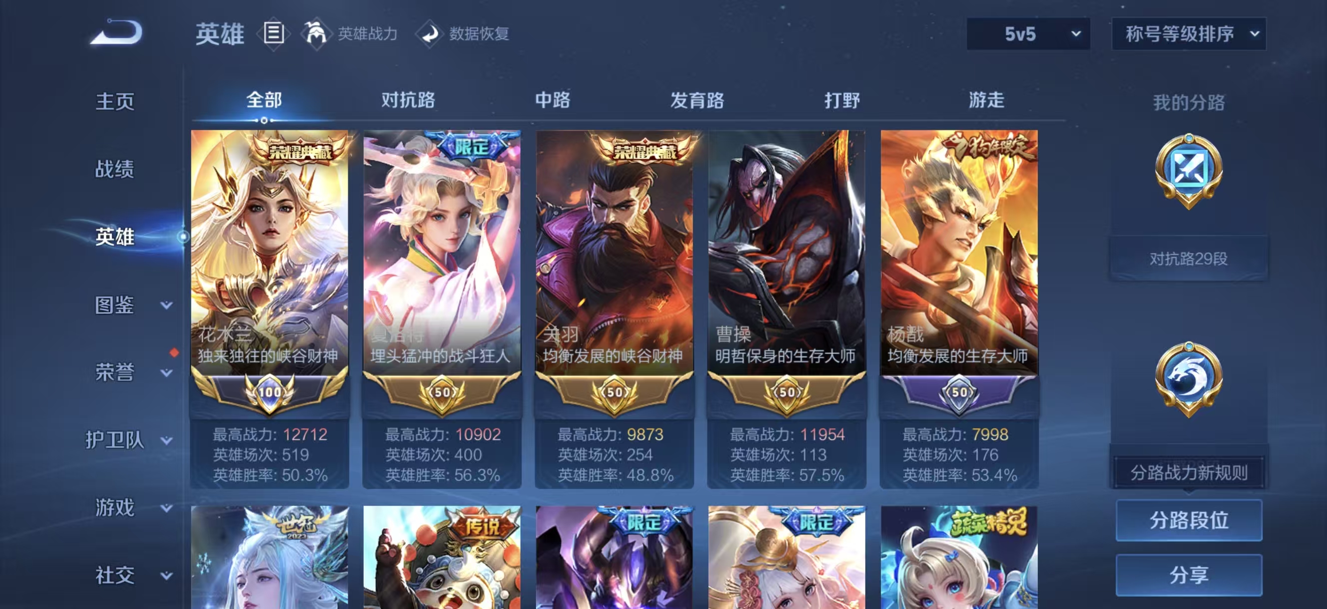 【安卓】 秒上号✨V10 656皮15典藏105传说3无双2珍品✨国服花木兰✨很多金标对抗路英雄超帅