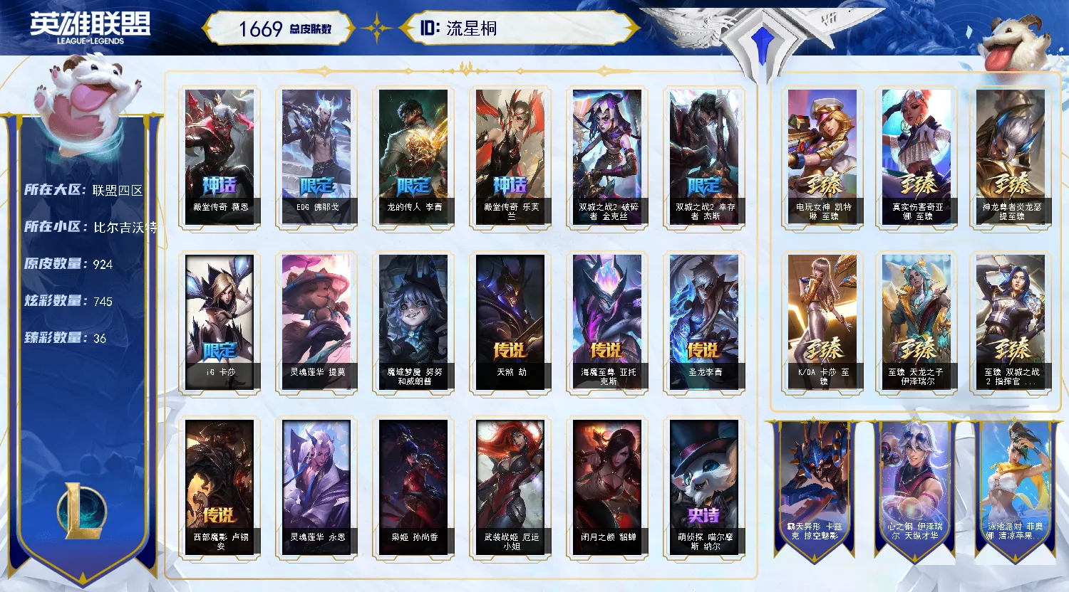 1600皮48神话|全英雄|125限定|圣堂金克丝|龙瞎|王国机神贾克斯|斗魂莎弥拉|斗魂佛耶戈