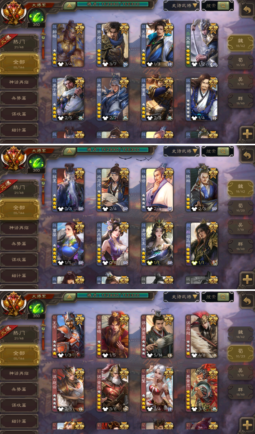 神太史慈、神赵云、神吕布、神陆逊、神张辽、神诸葛亮、神刘备,神姜维