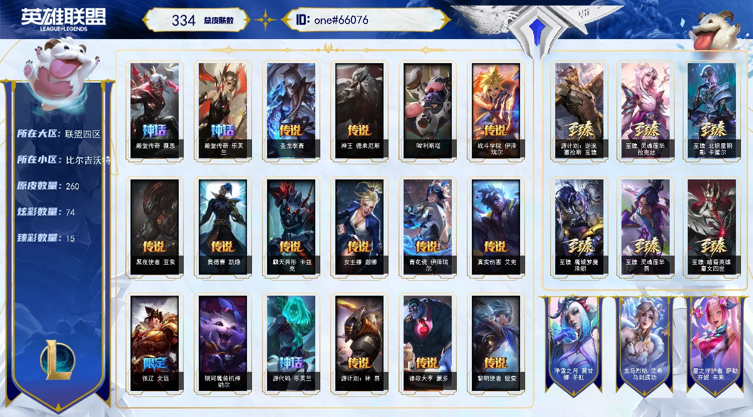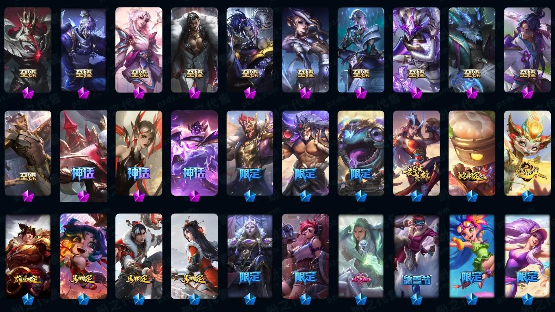 1607皮肤〓可排位妹子号白银〓全英雄〓47神话〓24臻彩195炫彩〓殿堂传奇〓生肖套〓至臻劫皇子剑